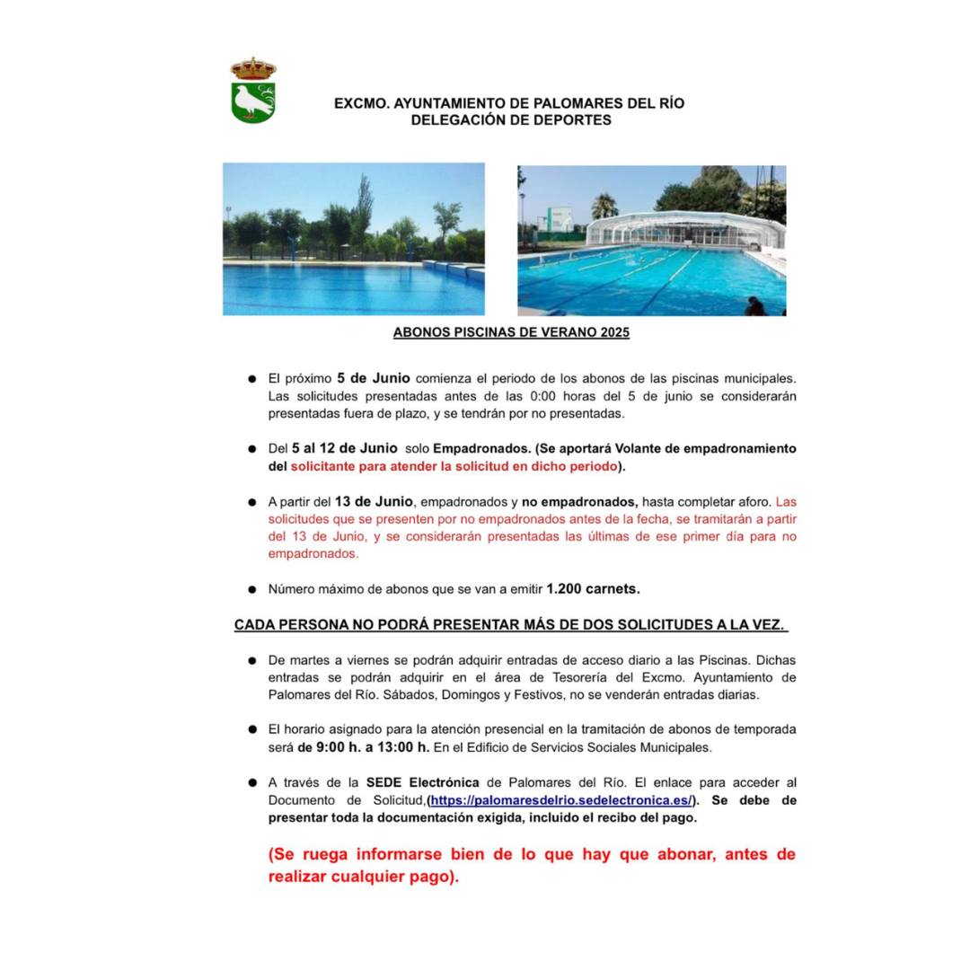 #PiscinaPalomares #AbonosTemporada #VeranoEnPalomares #PalomaresDelRío #Palomares10000 #ServiciosMunicipales #OcioSaludable #PalomaresActiva
