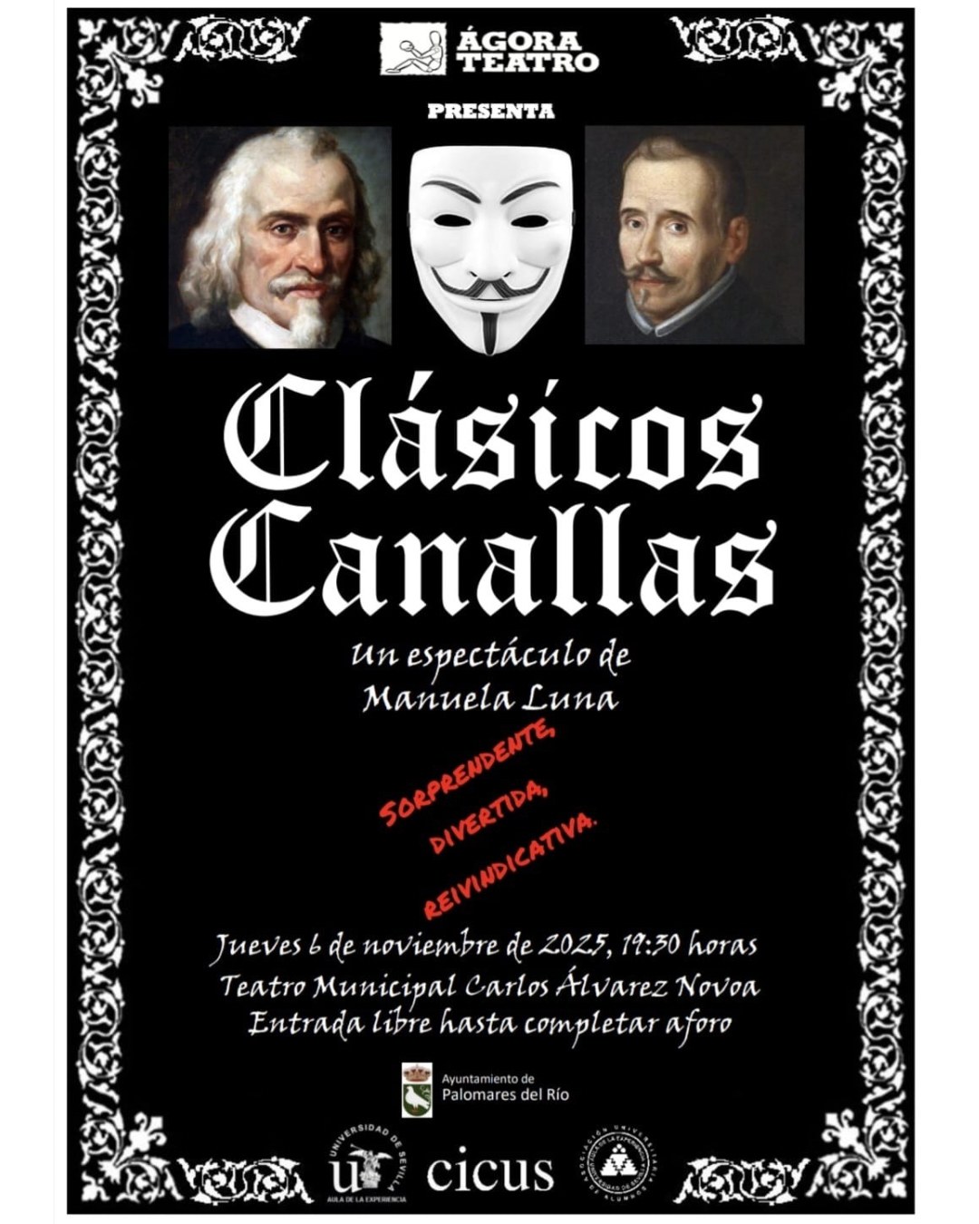 Como cierre del acto, disfrutaremos de la representación teatral “Clásicos Canallas”, interpretada por el Grupo de Teatro Ágora del Aula de la Experiencia.