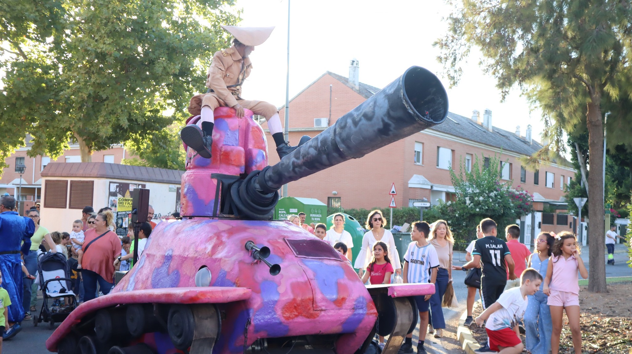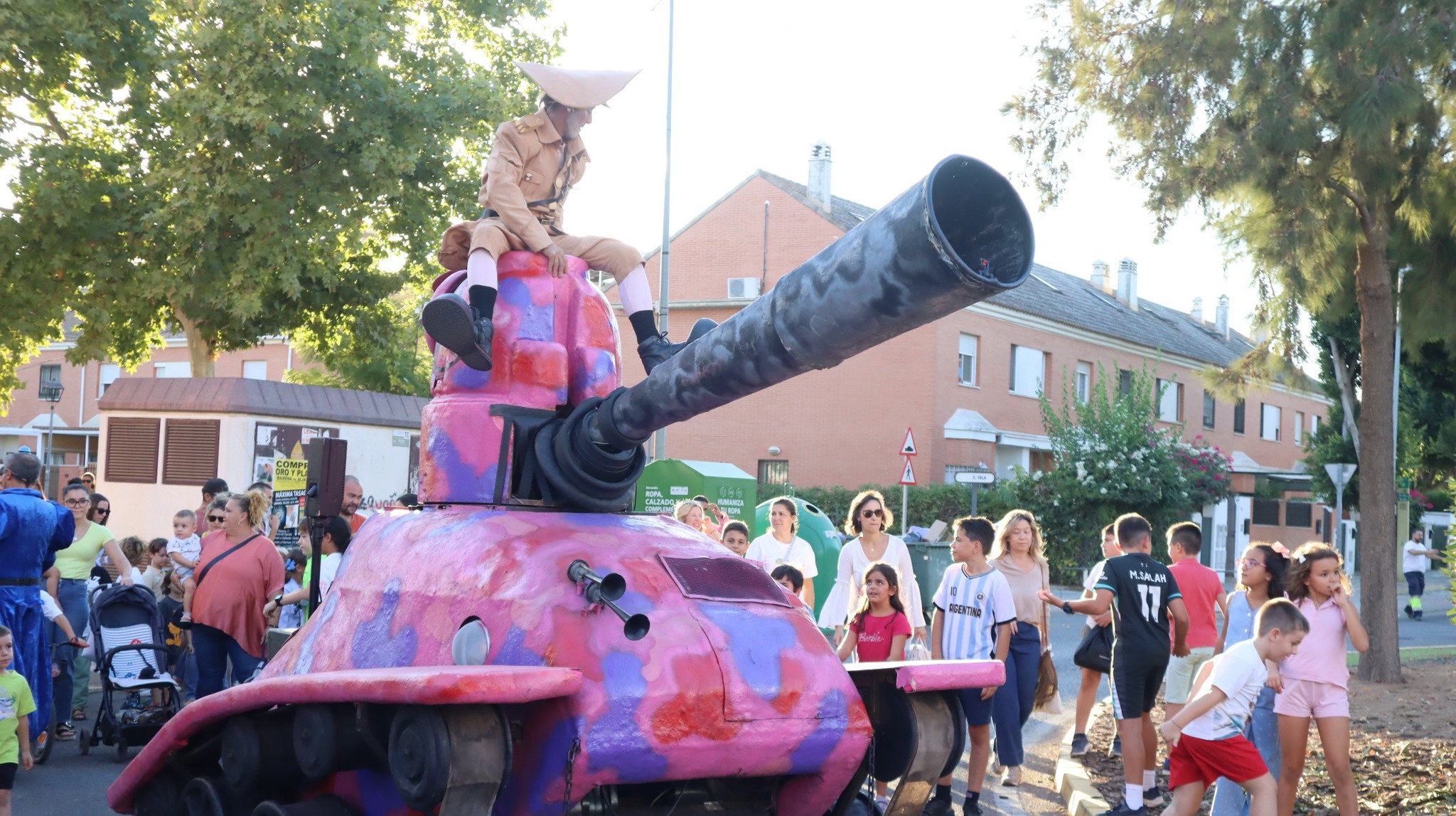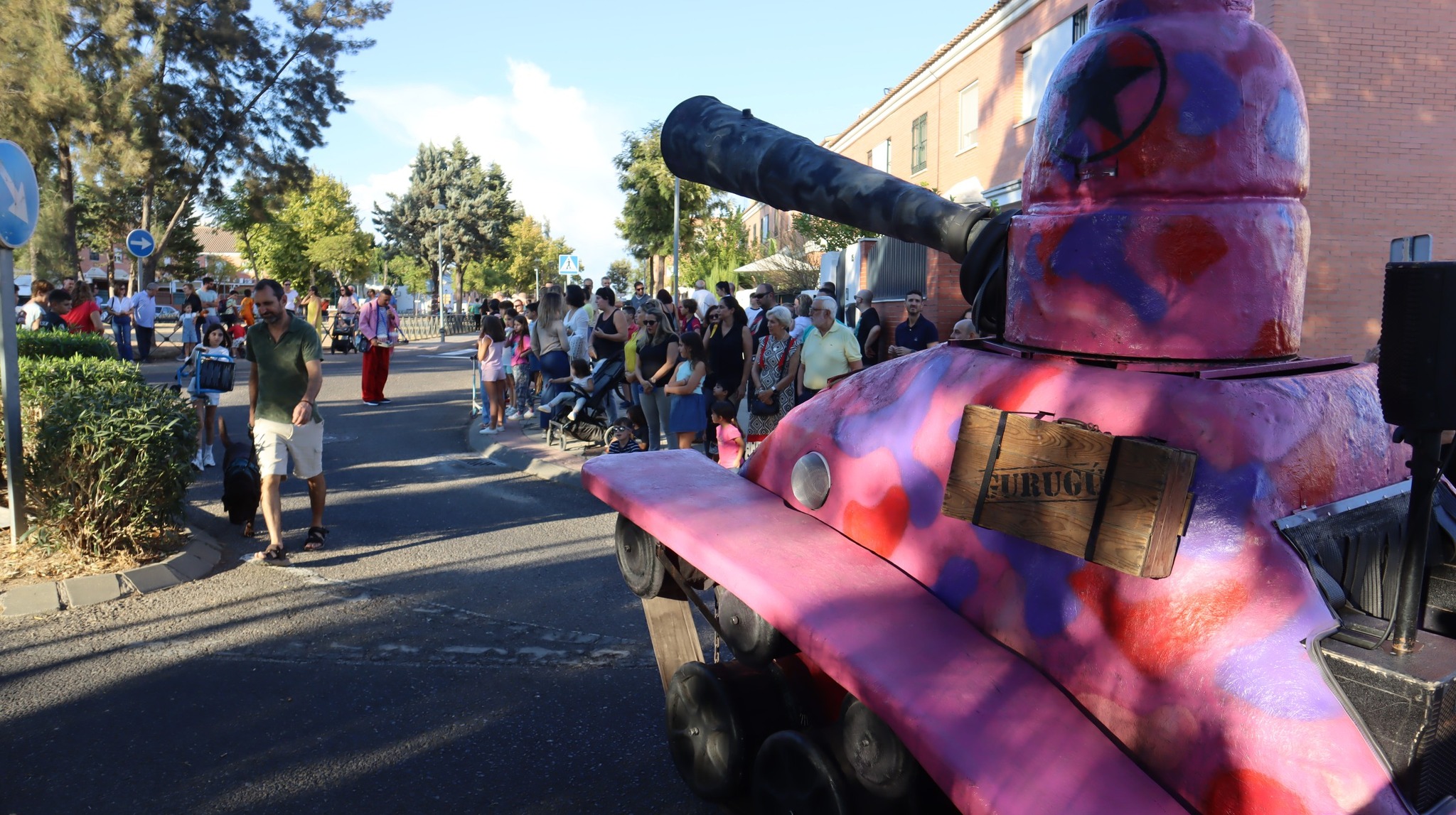 Tanque Gurugú nos hizo reír y reflexionar con su desfile absurdo y pacifista. Un hippie clown y un teniente payaso recorrieron el bulevar con su tanque de cartón y muchas ganas de romper fronteras… ¡con humor!