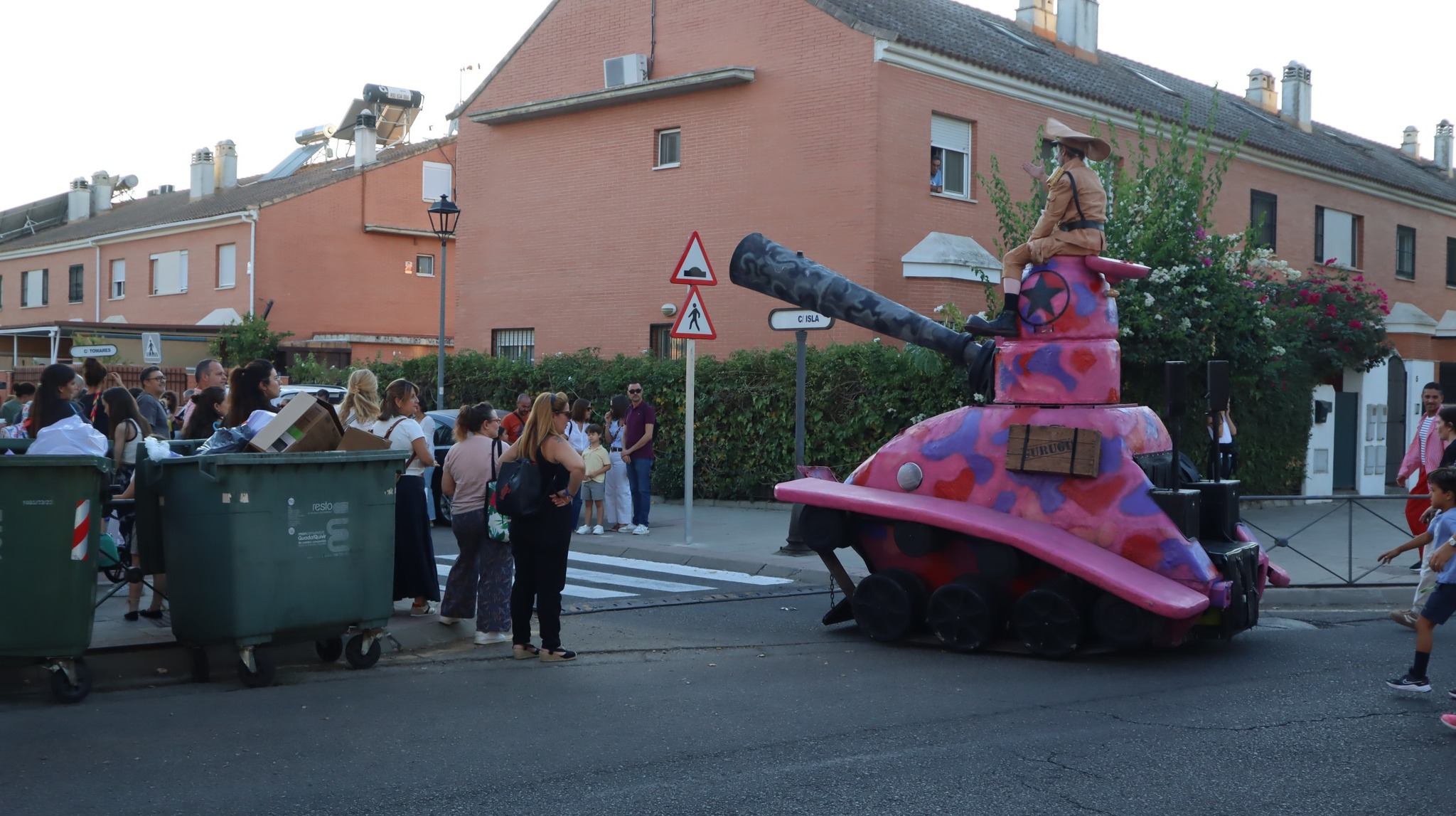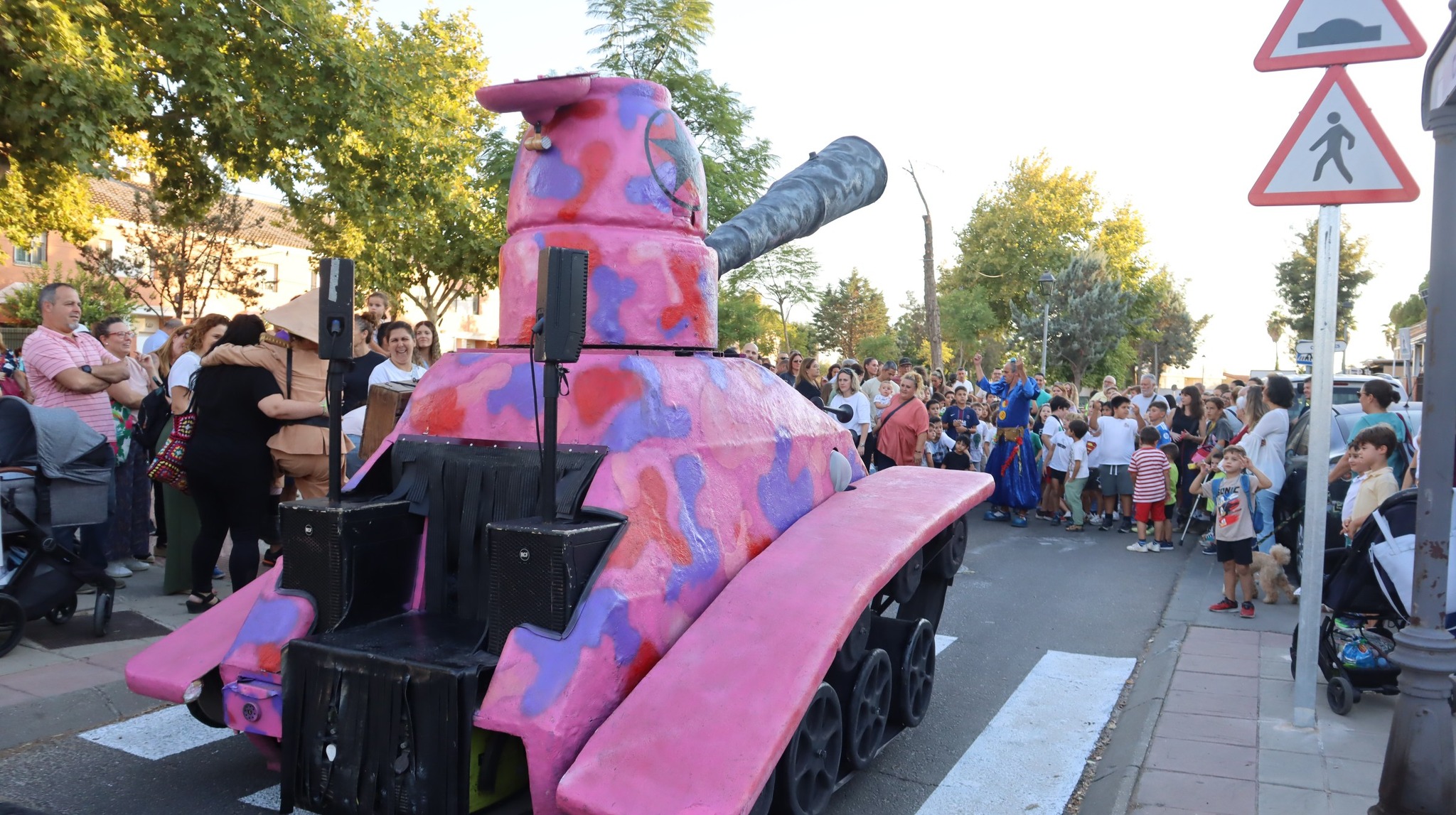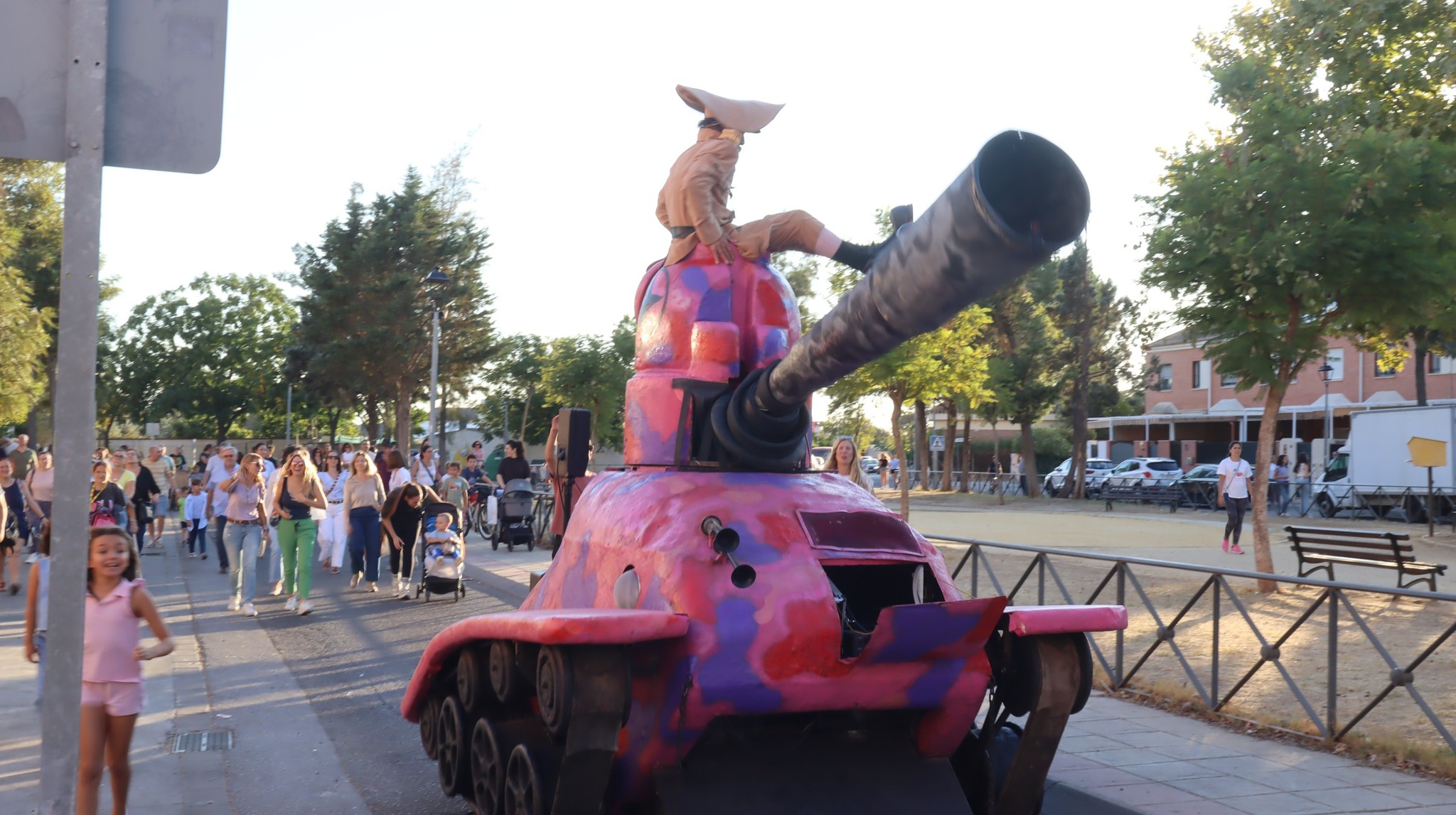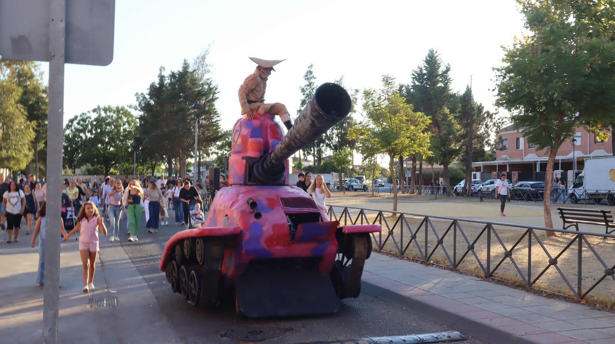 Tanque Gurugú nos hizo reír y reflexionar con su desfile absurdo y pacifista. Un hippie clown y un teniente payaso recorrieron el bulevar con su tanque de cartón y muchas ganas de romper fronteras… ¡con humor!