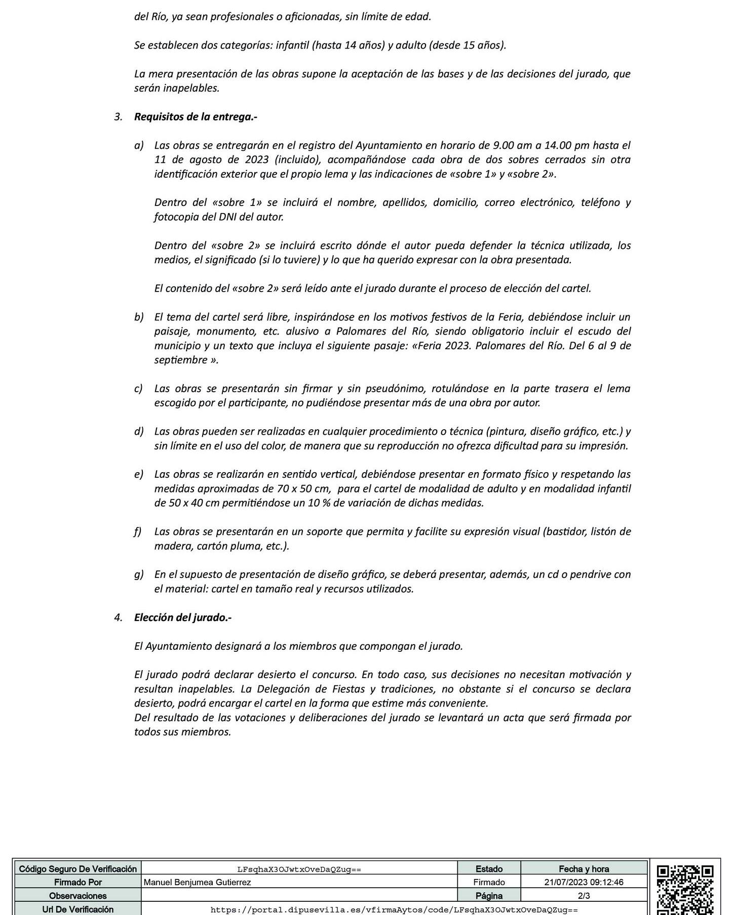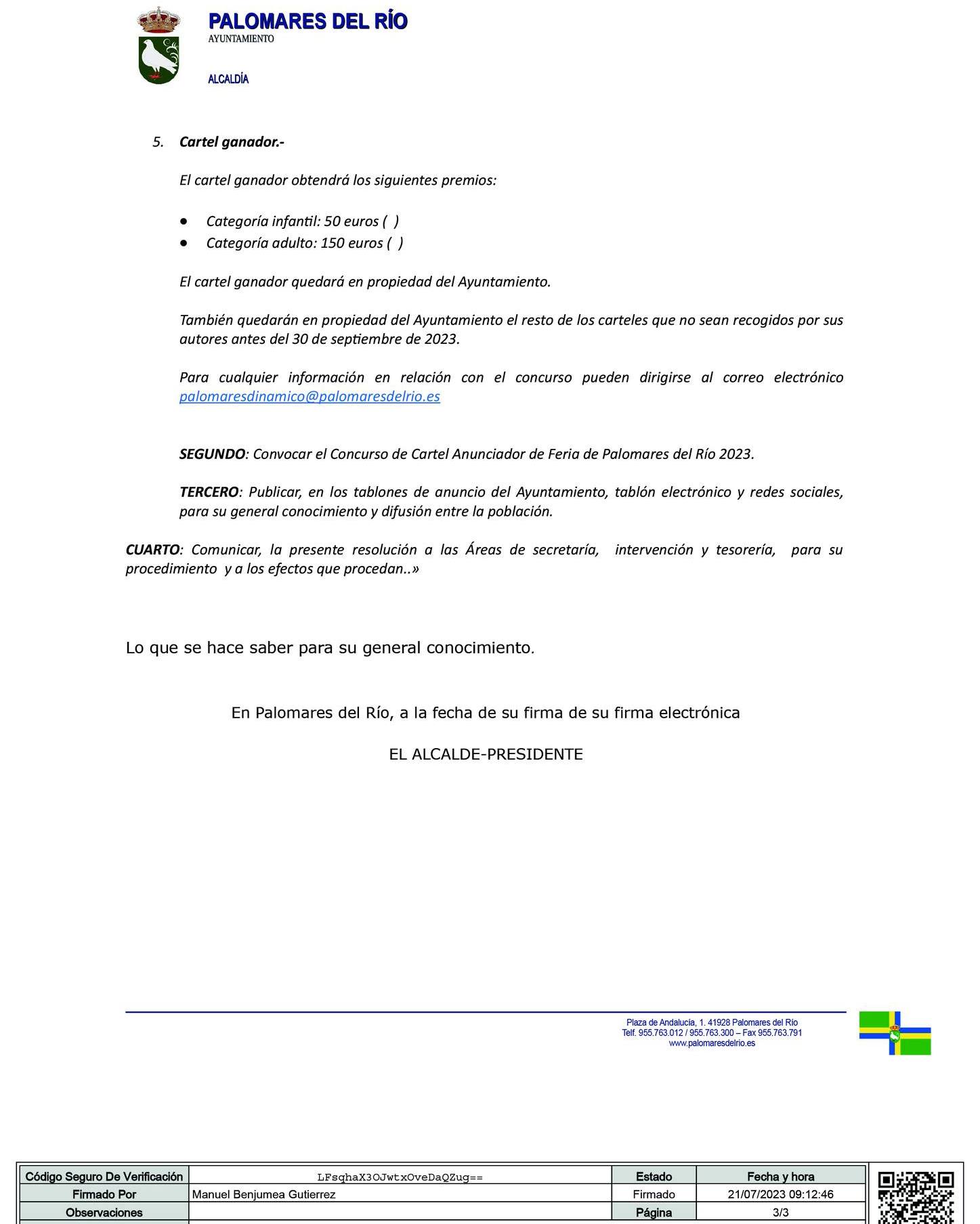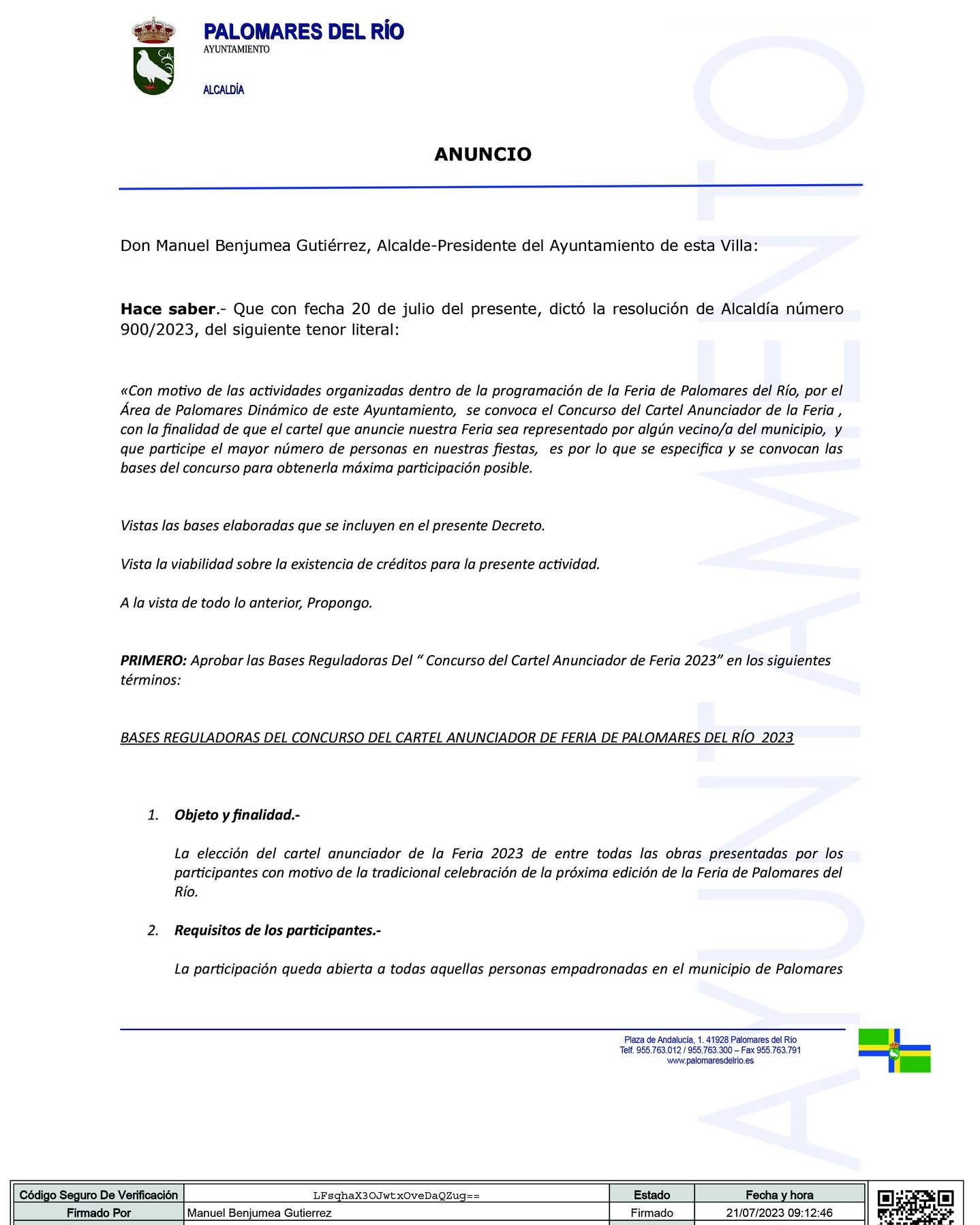 BASES REGULADORAS DEL CONCURSO DEL CARTEL ANUNCIADOR DE FERIA DE PALOMARES DEL RÍO 2023