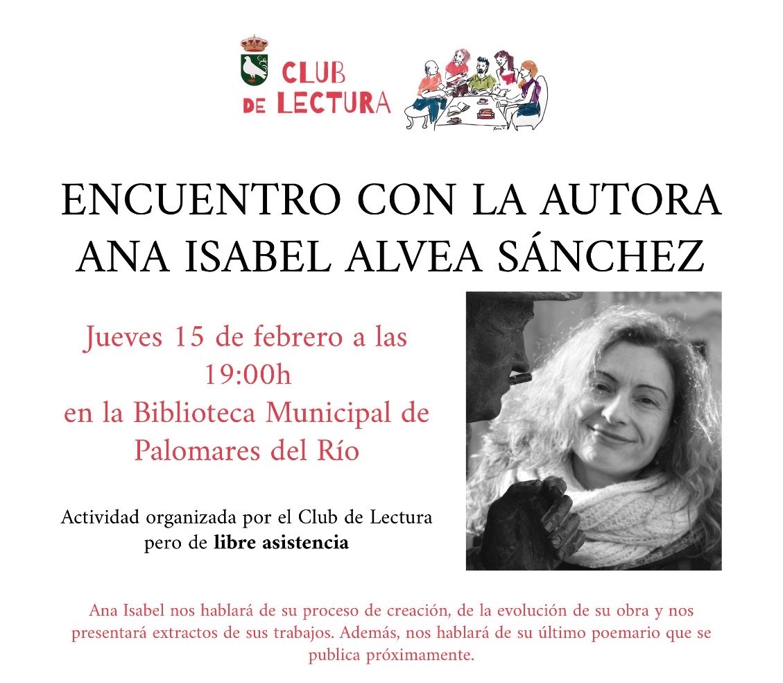 El Club de Lectura del Ayuntamiento organiza el próximo jueves 15 de febrero, a las 19:00h, un encuentro con la poeta Ana Isabel Alvea en la Biblioteca Municipal.