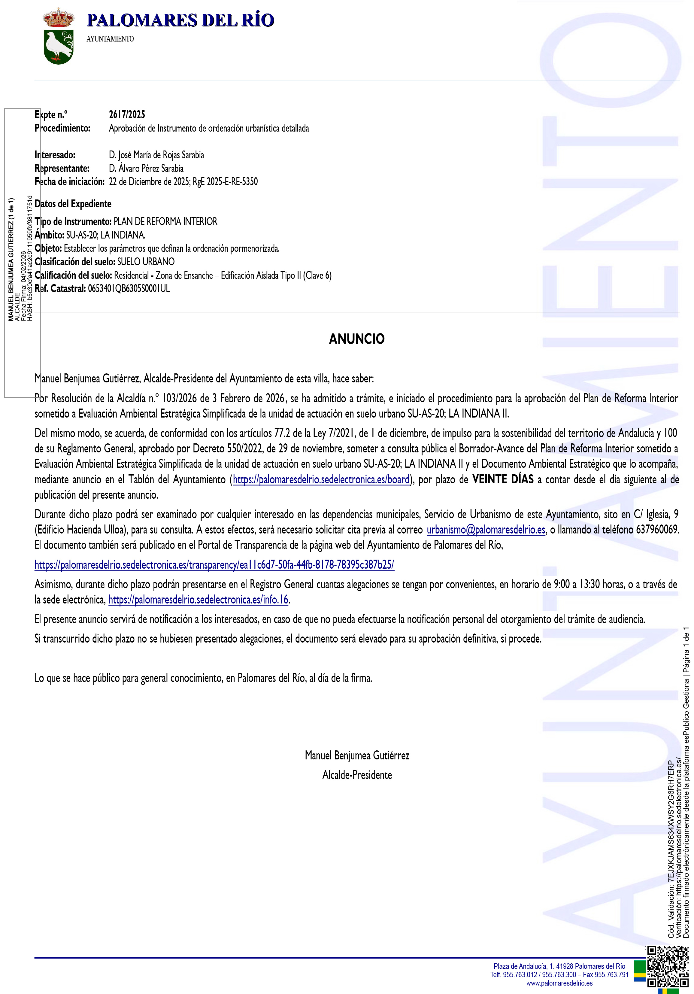 Avance Plan de Reforma Interior SU-AS-20 la Indiana y documento ambiental estratégico