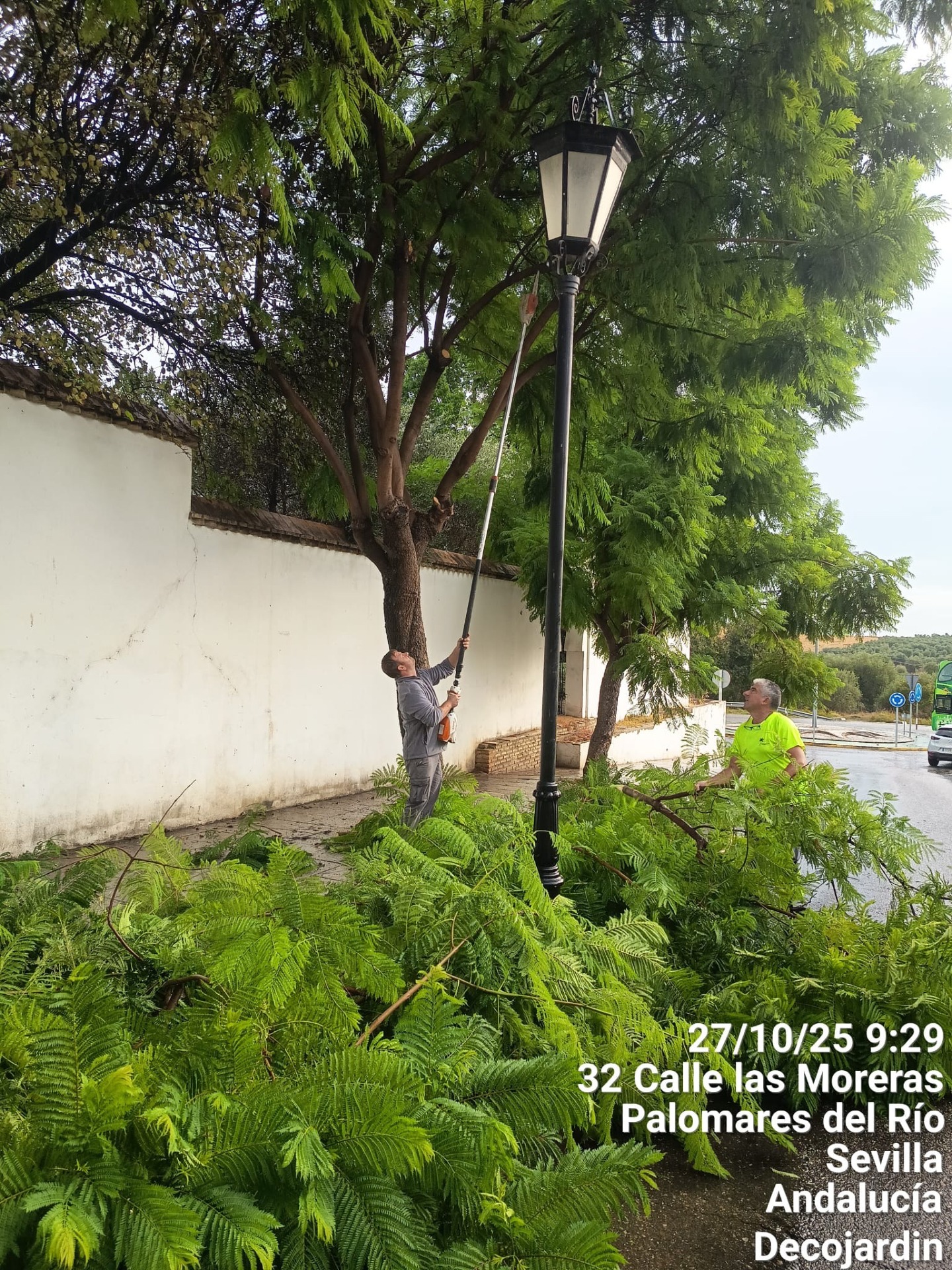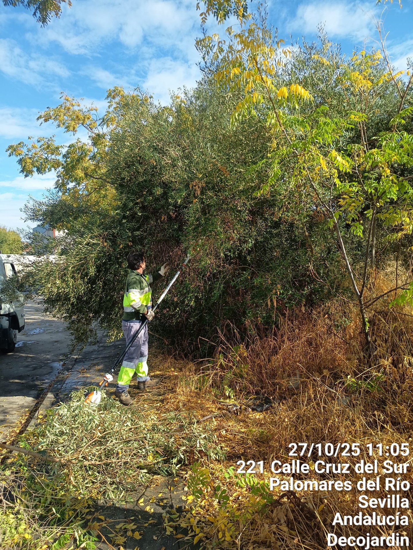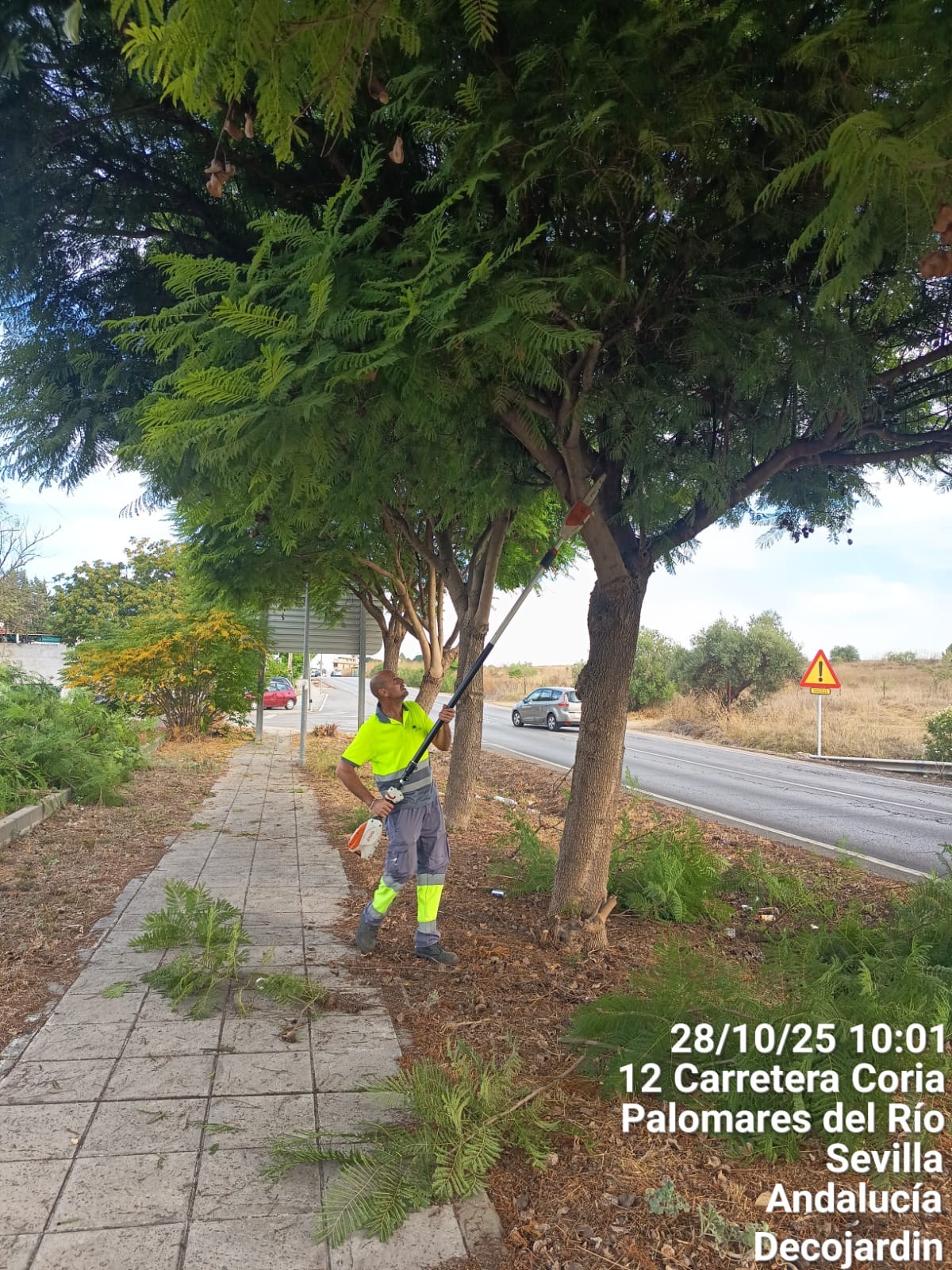 El Ayuntamiento de Palomares del Río, a través del área Palomares Sostenible, continúa con los trabajos de poda, limpieza y mantenimiento del arbolado urbano en distintas calles y accesos del municipio.