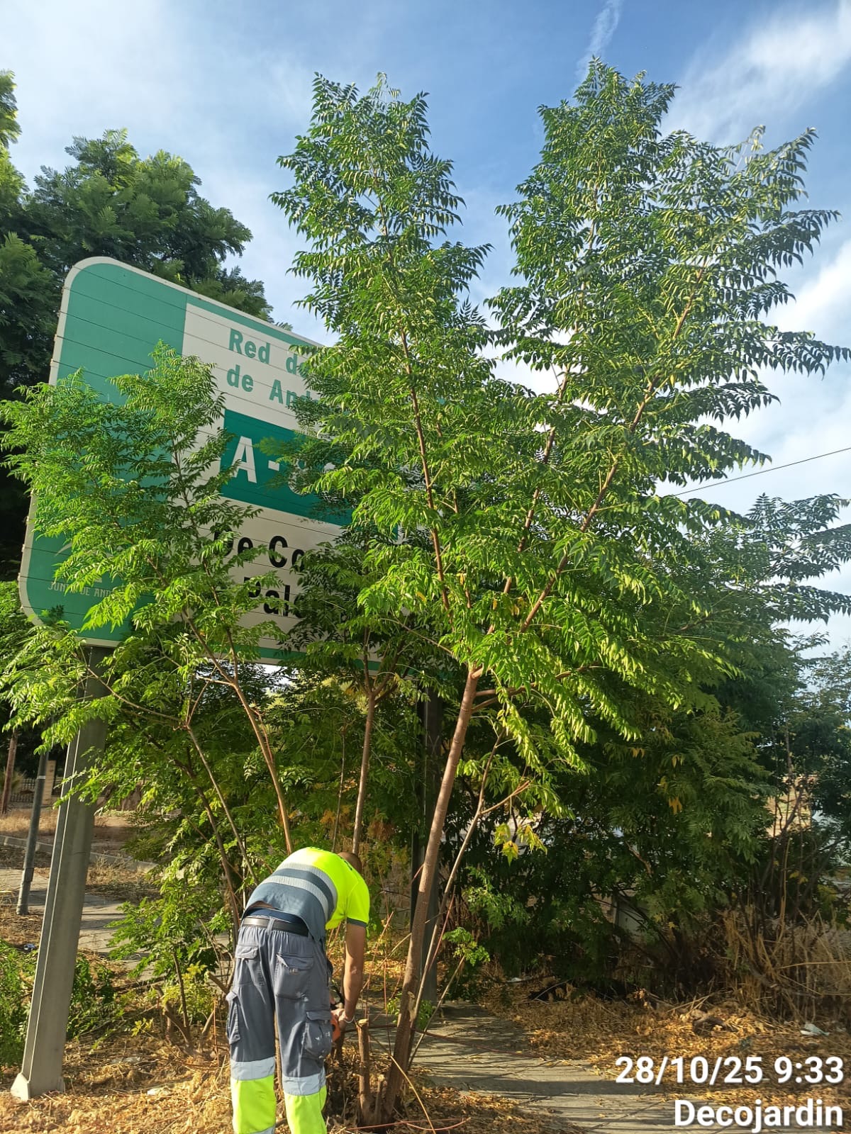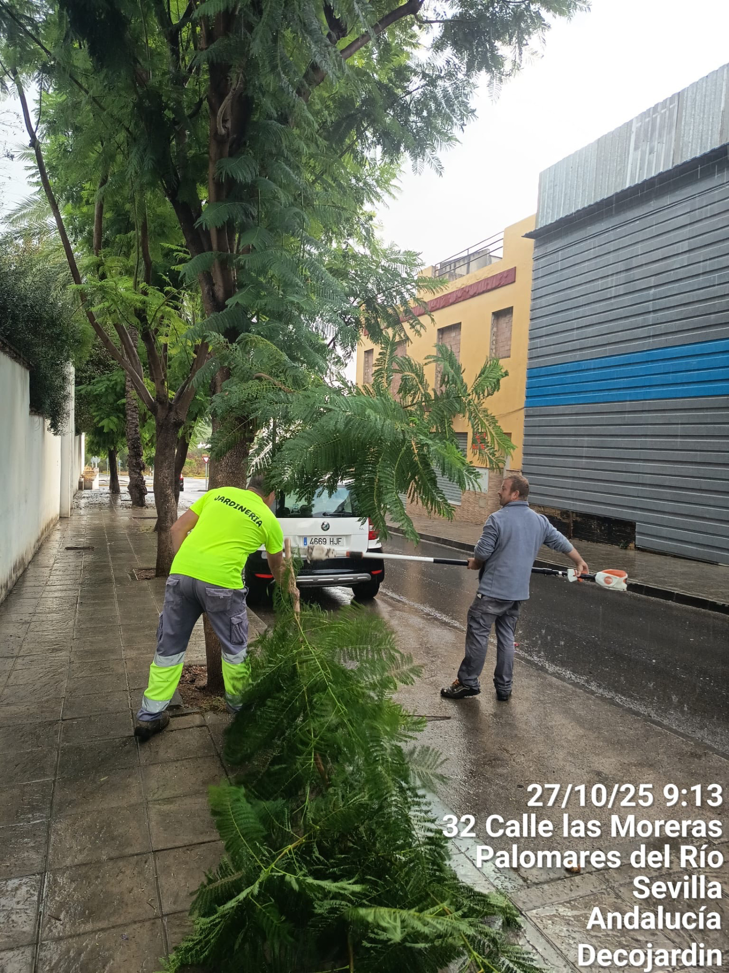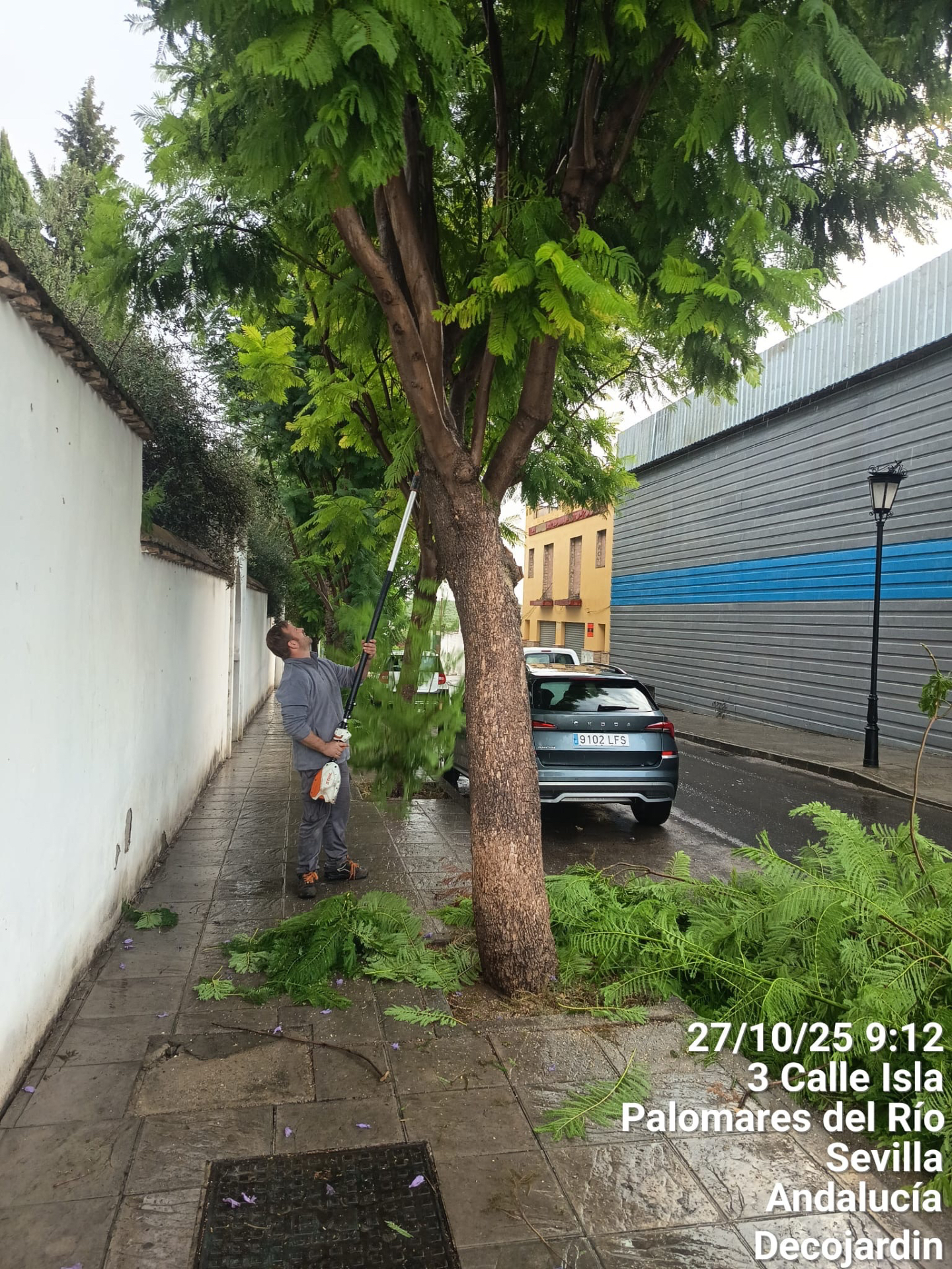 El Ayuntamiento de Palomares del Río, a través del área Palomares Sostenible, continúa con los trabajos de poda, limpieza y mantenimiento del arbolado urbano en distintas calles y accesos del municipio.