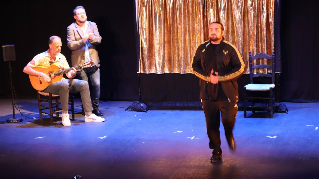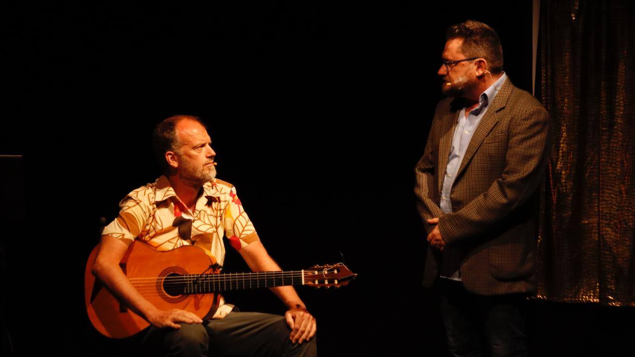 la representación de la obra teatral “El payo, el guiri y el gitano” fue un total éxito. Tino Van der Sman, Alejandro Villaescusa y El Oruco fueron los tres actores de una obra marcada por el compás y el humor, basada en la propia vida del guitarrista holandés.