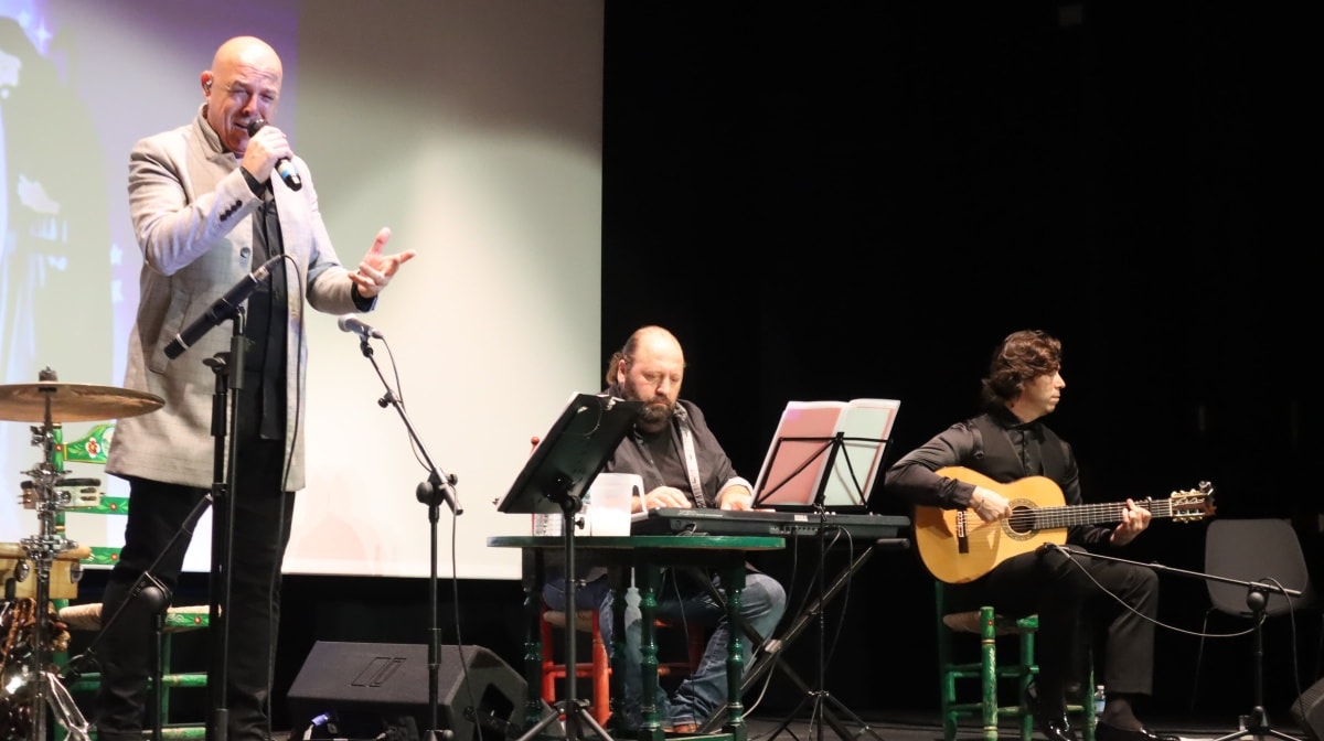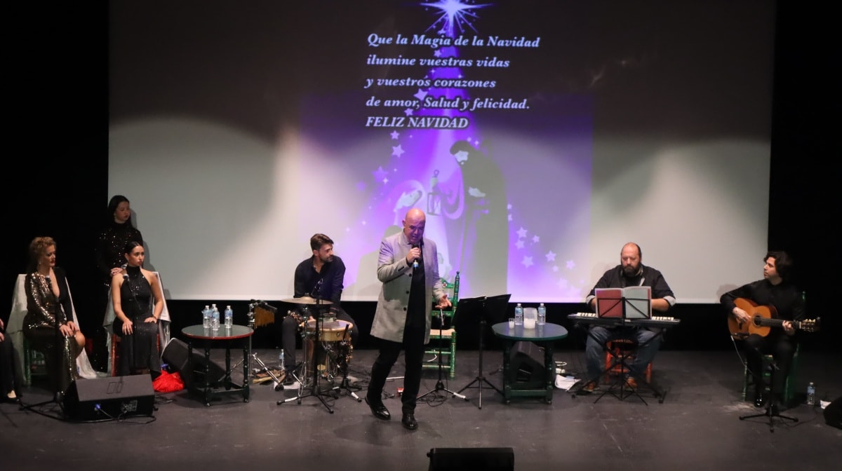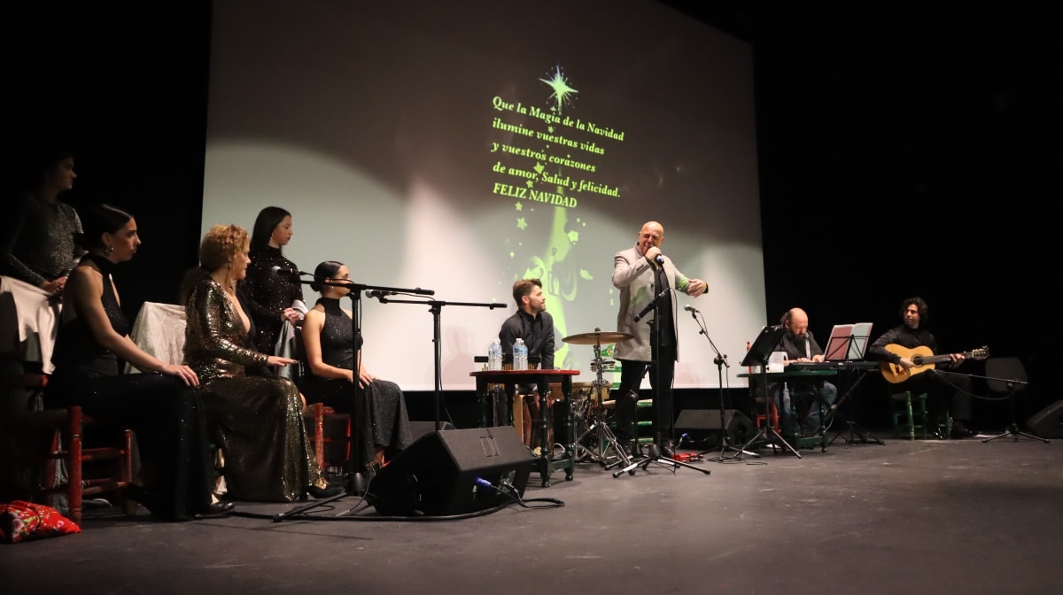 El aforo del Teatro fue completado por un público que disfrutó de la actuación de un grupo formado por Sebi Perejón, Enrique Garfía, José Mari Muñoz y Manuel “El Pati”. Los artistas ofrecieron un repertorio navideño con fuerza y cercanía, acompañados por palmas que invitaban a participar a los asistentes.