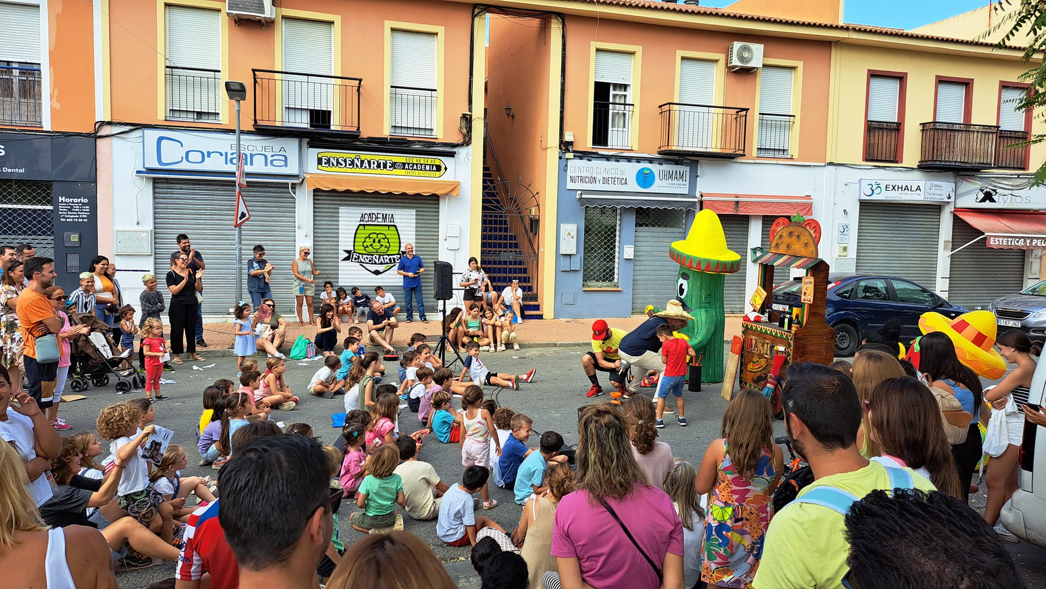 Actuación en el II Festival Teatro de Calle Palomares del Río con la La compañía Rafashow (Burguillos) representando Máxico, un espectáculo de magia y circo.