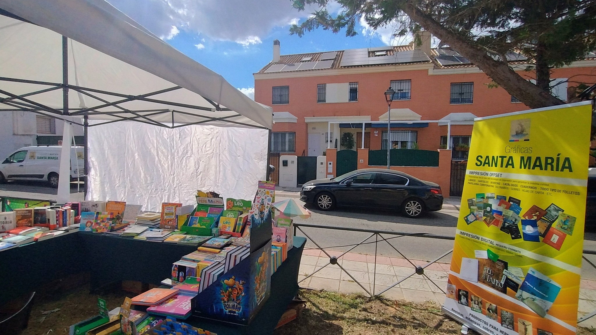 Junto a la Inauguración de la Feria del Libro por parte del concejal de Palomares Habitable, Pedro Conde Díaz se abrió el stand de Gráficas Santa María.