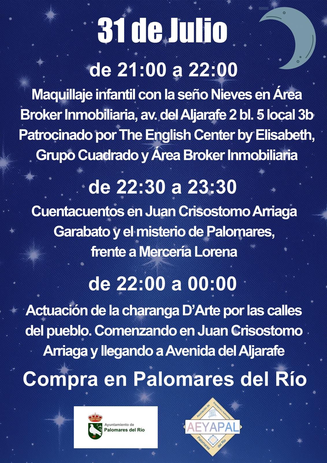 - 22:30 a 23:30 h – Cuentacuentos: “Garabato y el misterio de Palomares”