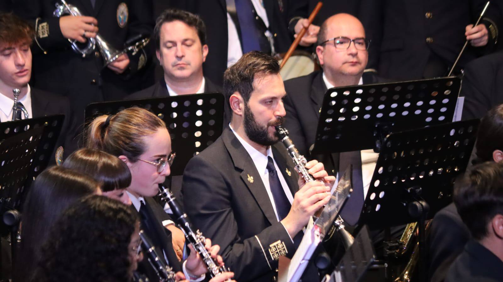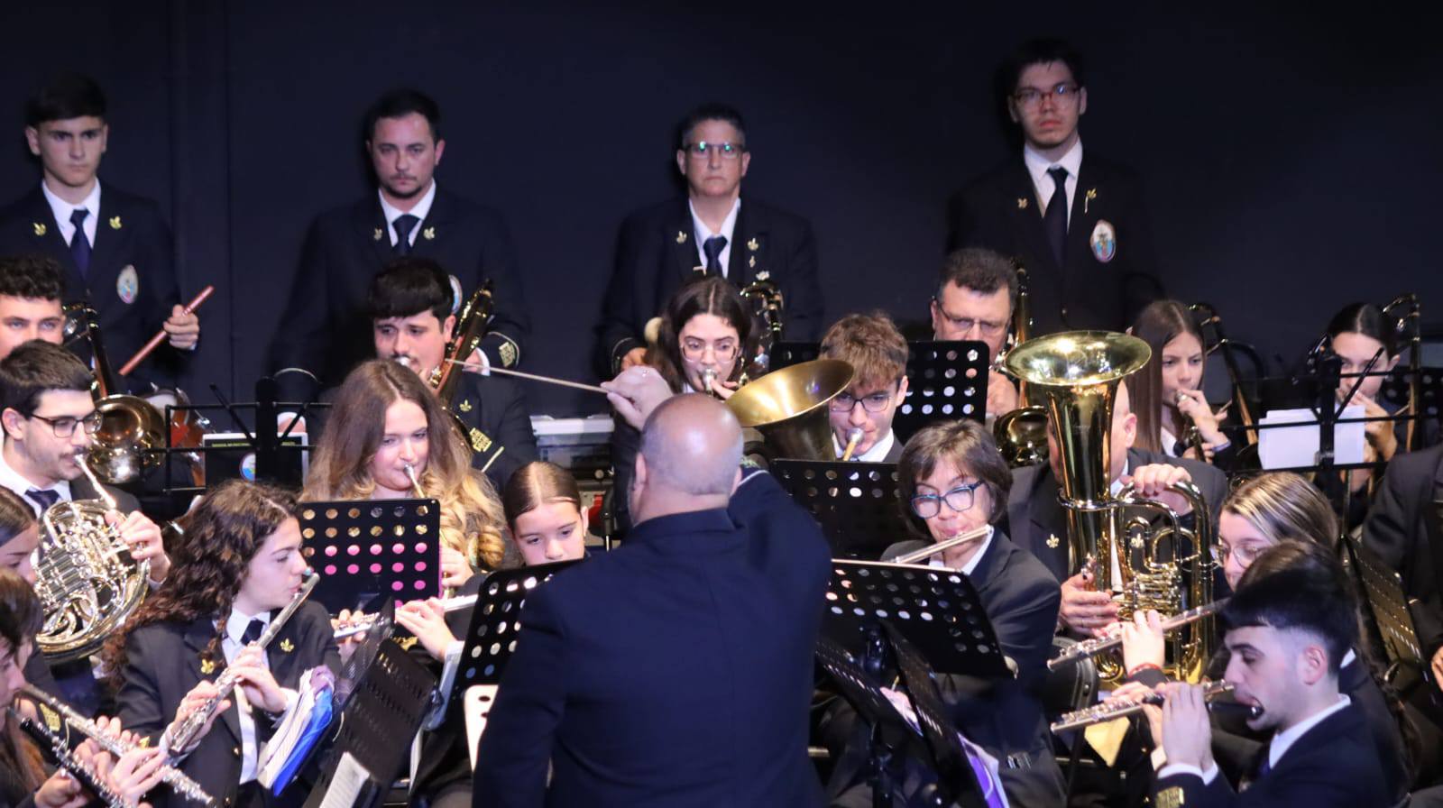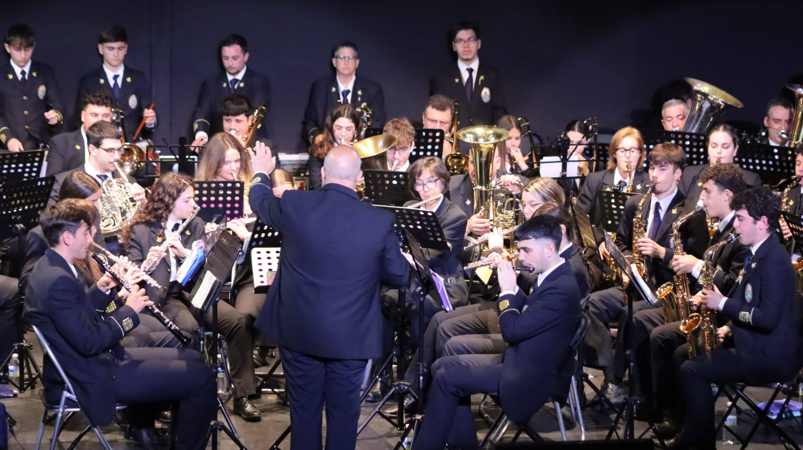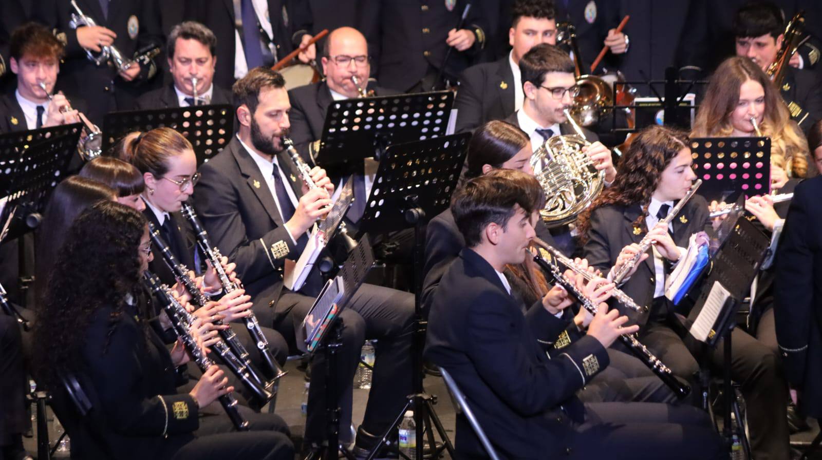 La banda ofreció los sonidos de estas fechas, marchas cuidadas y llenas de matices, convirtiendo el Teatro Municipal de Palomares del Río en un espacio de música cofrade.