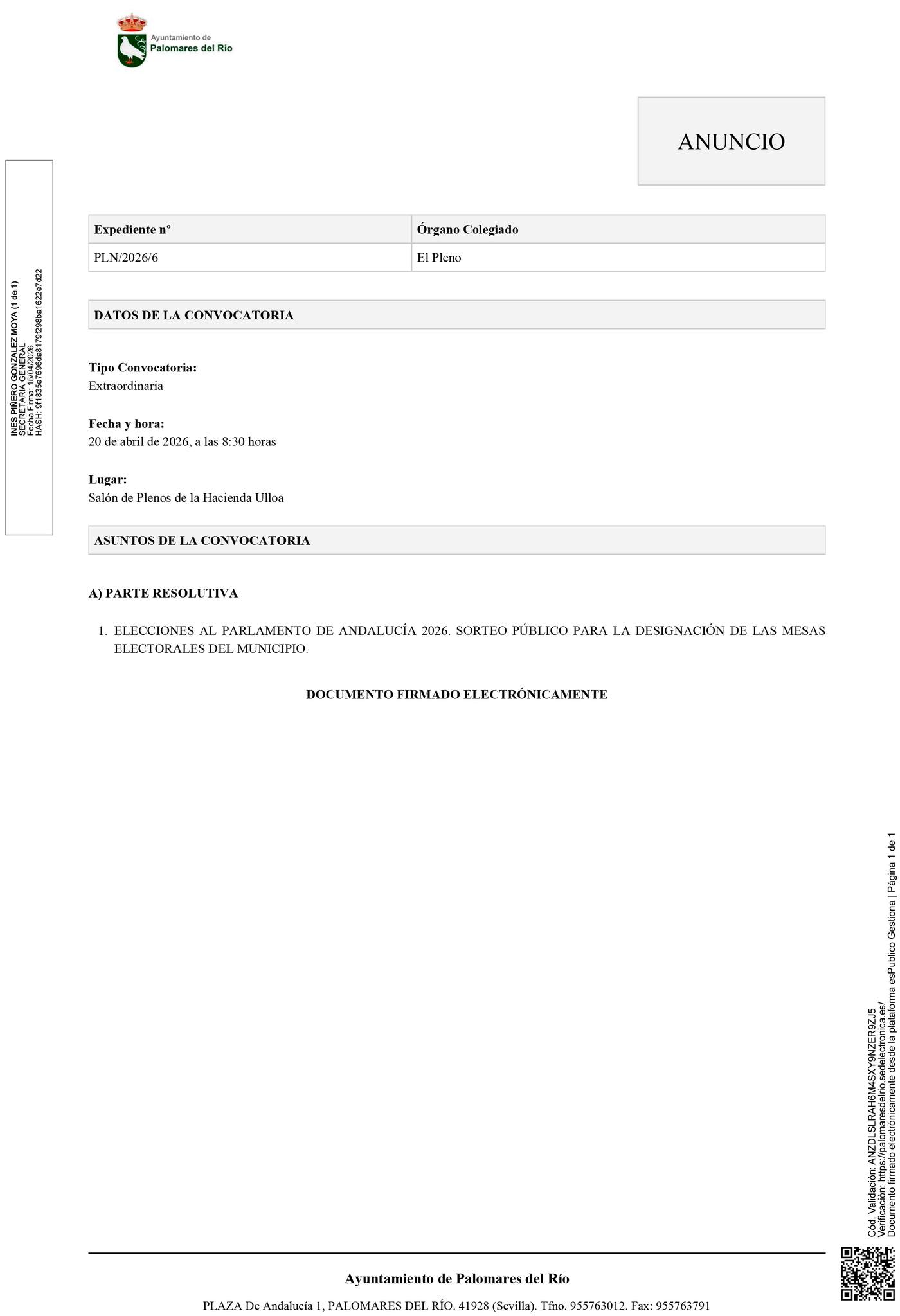 PALOMARES DEL RÍO - 20/04/2026 8:30H - PLENO EXTRAORDINARIO