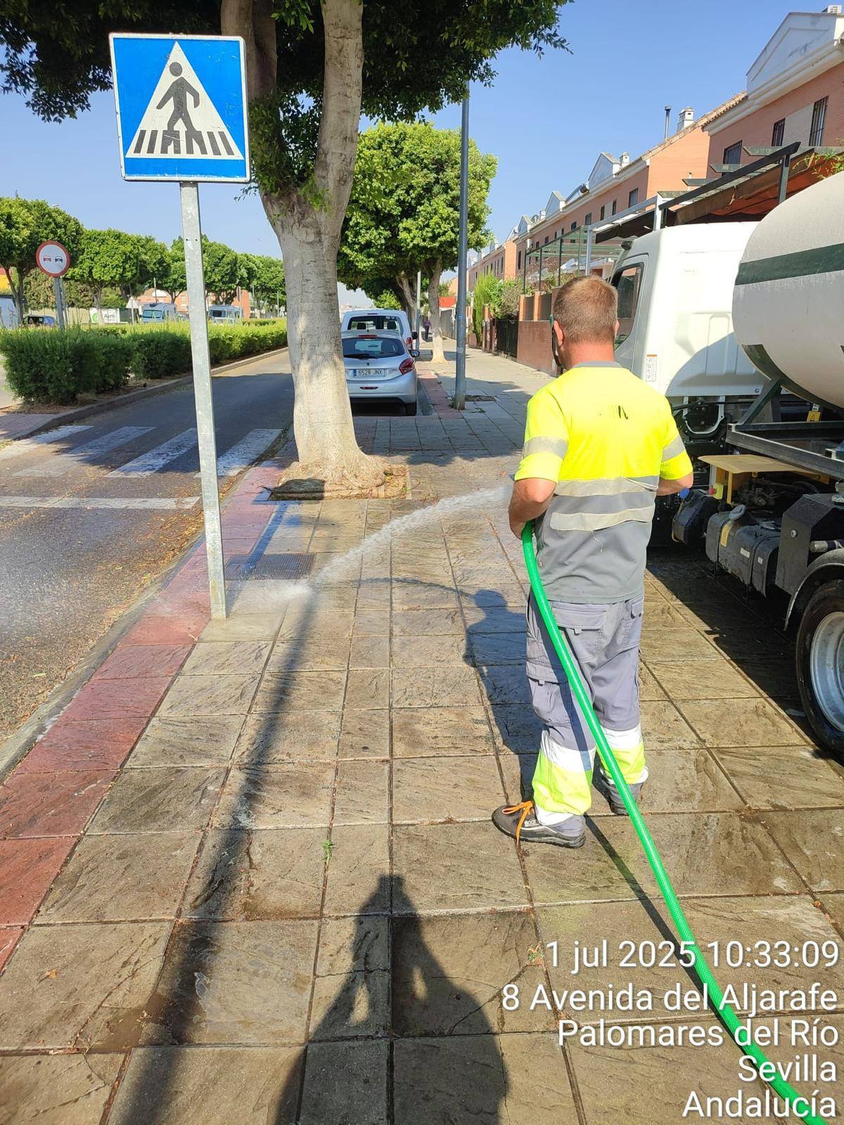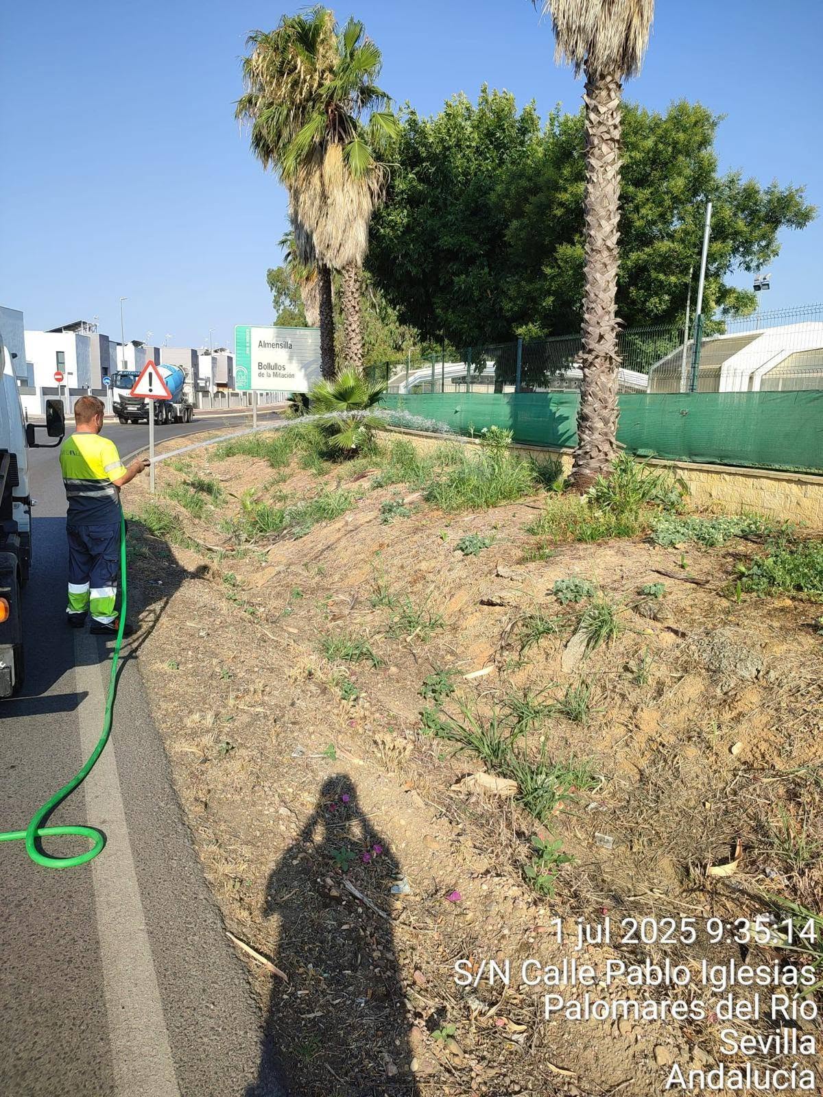 Desde el área de #PalomaresSostenible seguimos trabajando para que las zonas verdes luzcan sanas y cuidadas. Durante estos días, se están realizando labores de riego en el arbolado y los setos del municipio, garantizando su bienestar durante la temporada estival.