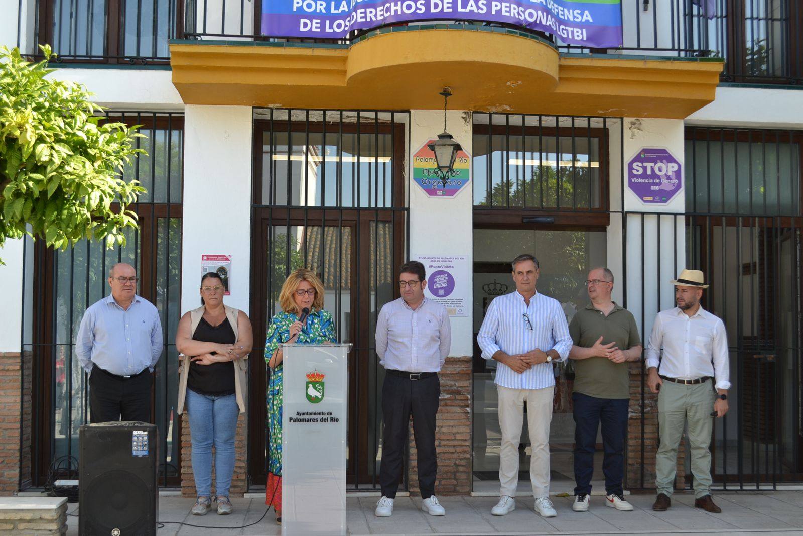 Esta mañana, en un emotivo acto, la concejala de Palomares Inclusivo, Natividad Jiménez, junto al alcalde, Manuel Benjumea y miembros del equipo de gobierno, ha realizado la lectura del manifiesto conmemorando el día, un texto en el que se reivindica los derechos, la igualdad y el respeto hacia el colectivo LGTBI en todos los rincones de nuestro país.