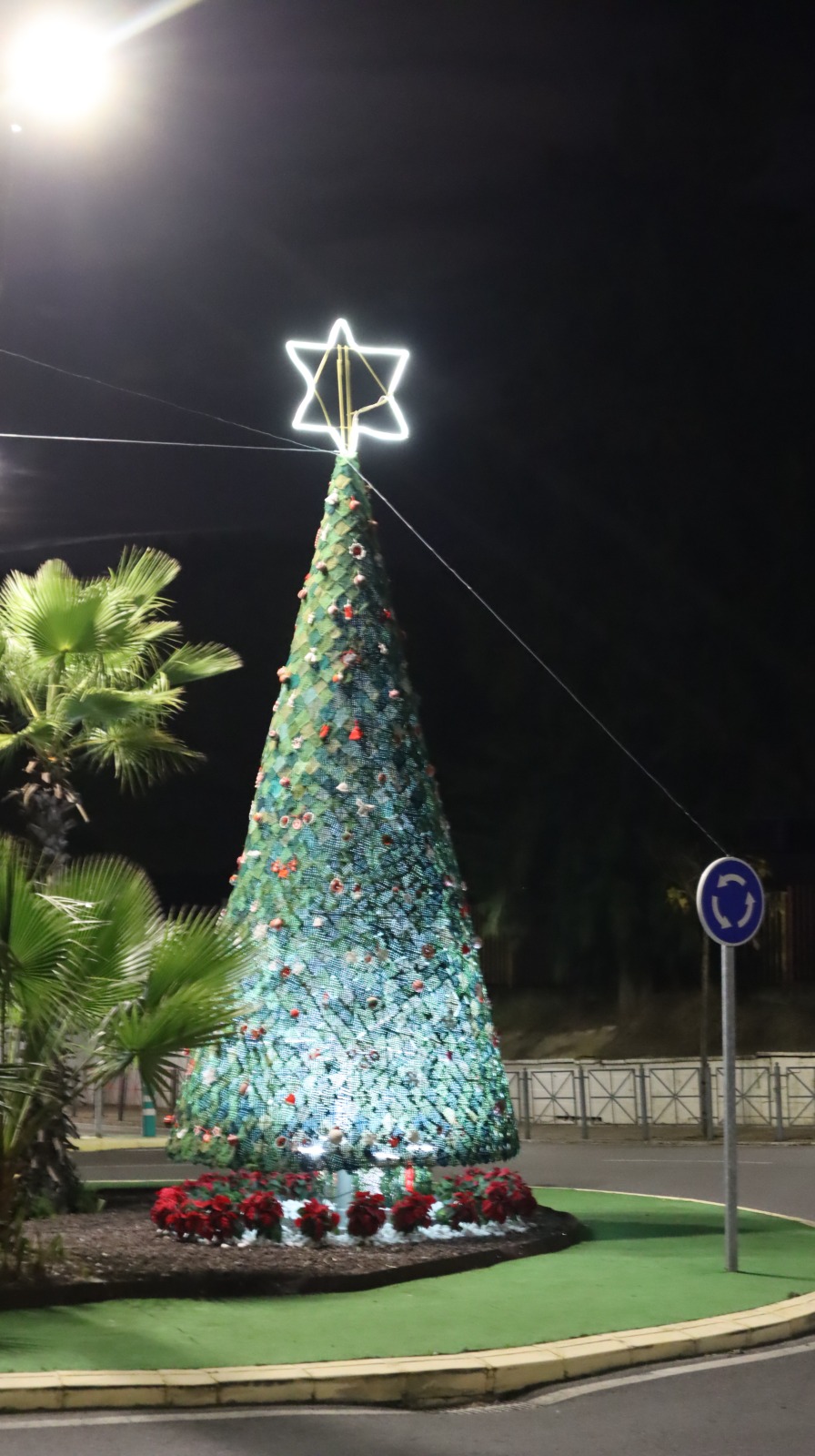 #palomaresdelrio ya se encuentra iluminada y adornada con motivos navideños en distintas zonas y calles de la localidad, con elementos que sobresalen como el árbol de Navidad de croché o la casa de Papá Noel, también realizada el año pasado.