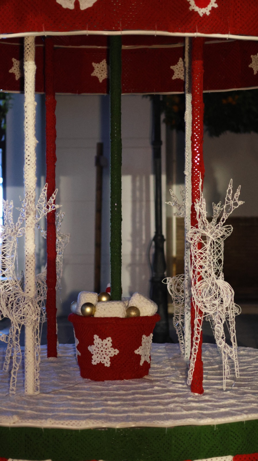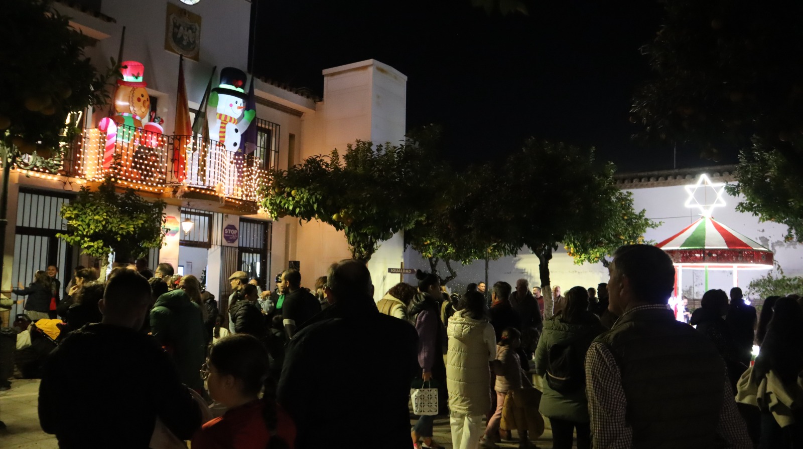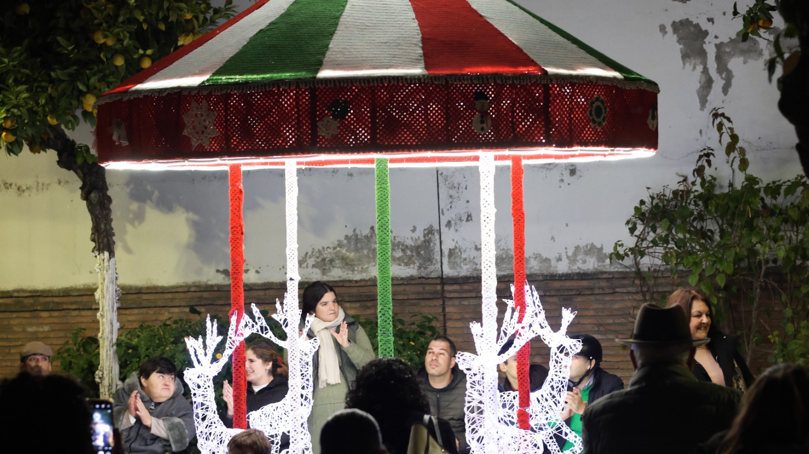 El acto estuvo acompañado también por la puesta en marcha de los adornos exteriores, entre los que destaca el tiovivo de croché, un trabajo realizado por las “crocheteras” e impulsado por el área de #PalomaresDinámico, dirigido por Joaquina Gómez, que quiso poner en valor la dedicación y creatividad de estas mujeres palomareñas que fueron luego reconocidas por el ayuntamiento en un acto en el salón de Servicios Sociales del Ayuntamiento Palomares del Río.