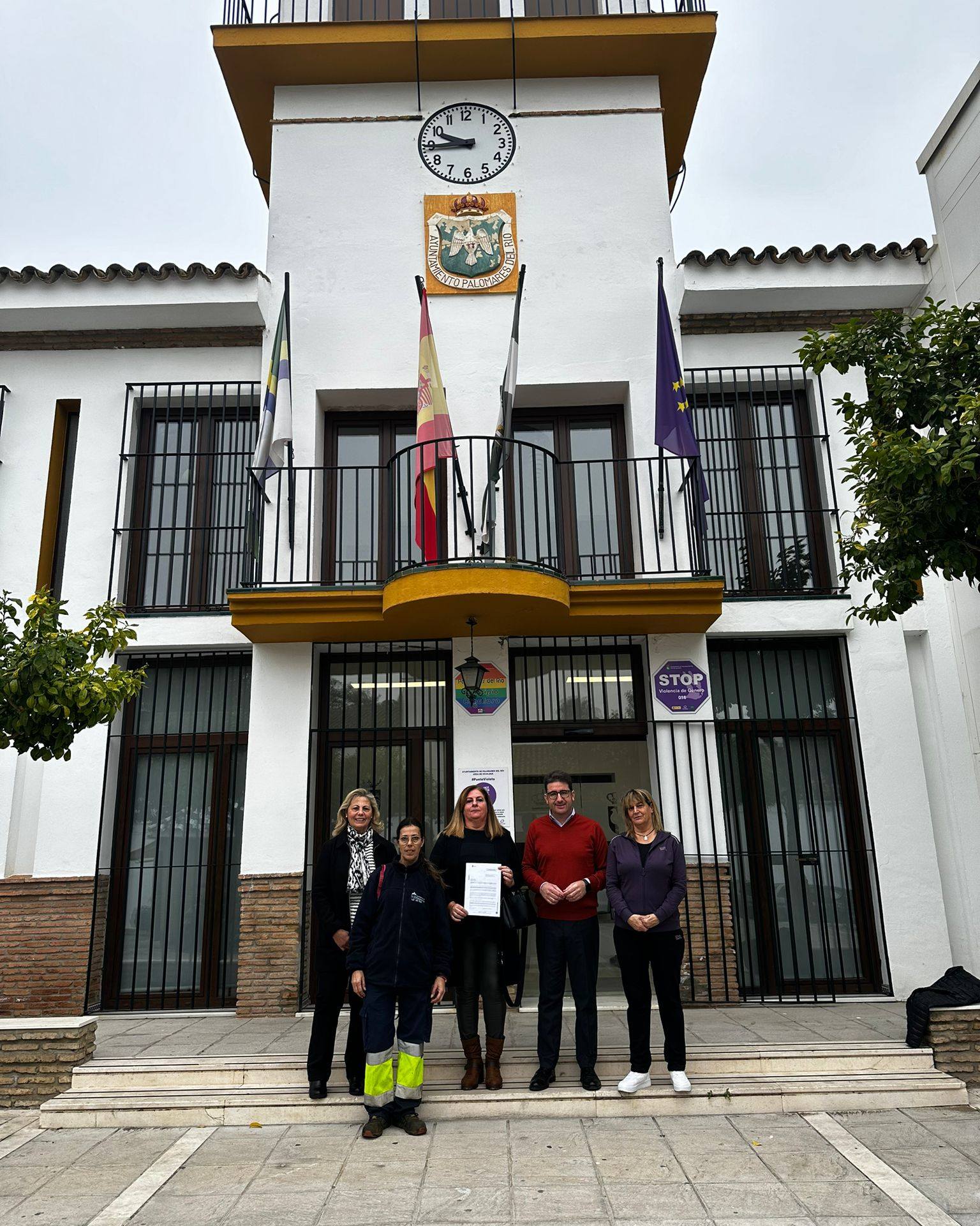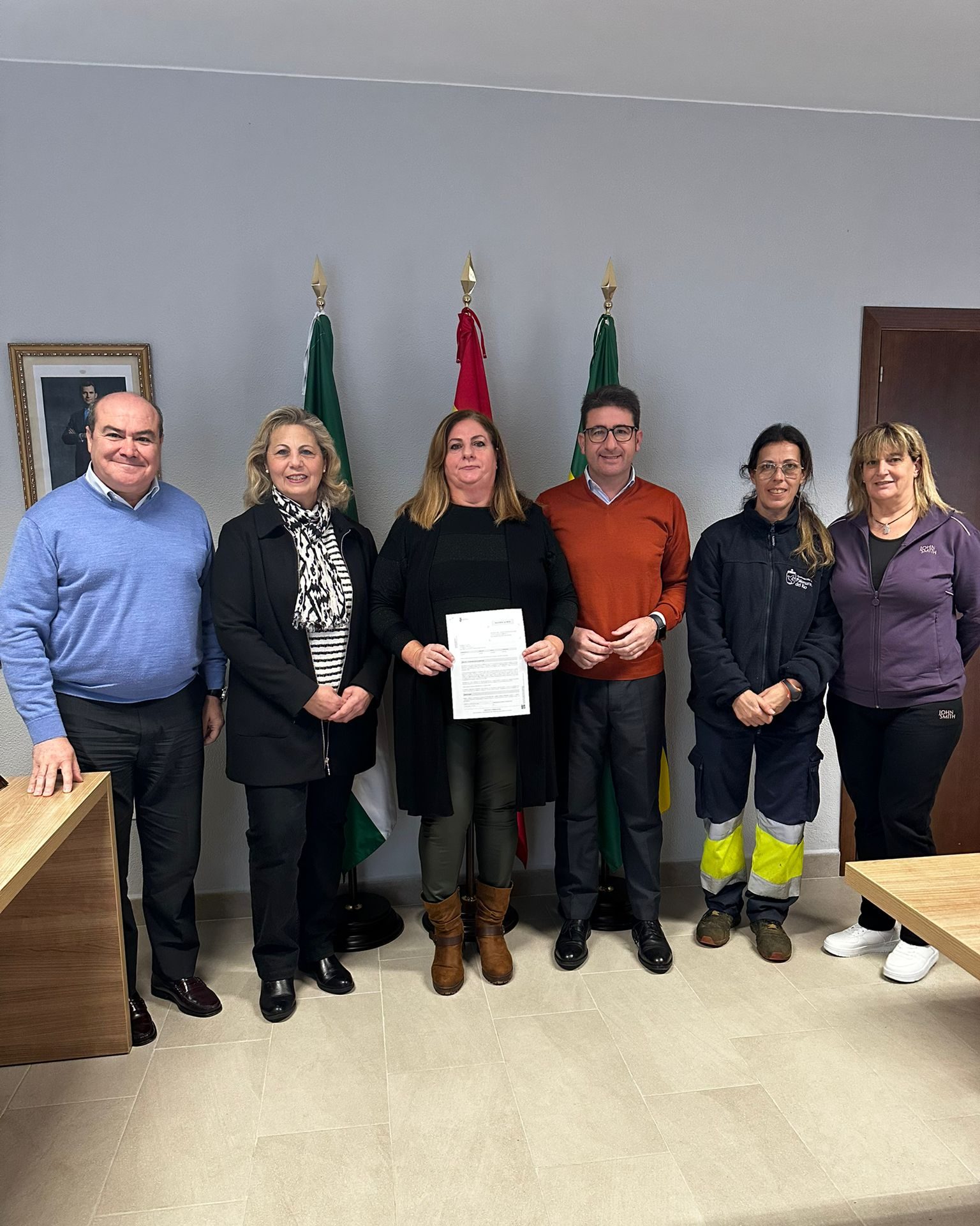 La celebración de los tribunales ha dado lugar a firmar 1 nuevo contrato como personal laboral fijo, estabilizada en su plaza. Tanto el alcalde Manuel Benjumea, como el delegado del área Palomares Habitable, Pedro Conde Díaz; la presidenta del comité de empresa, Fita Pichardo, la representante del comité de empresa, Pepi Castillo y Mercedes Corento, han estado en la firma del contrato.