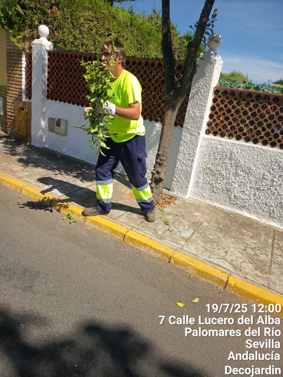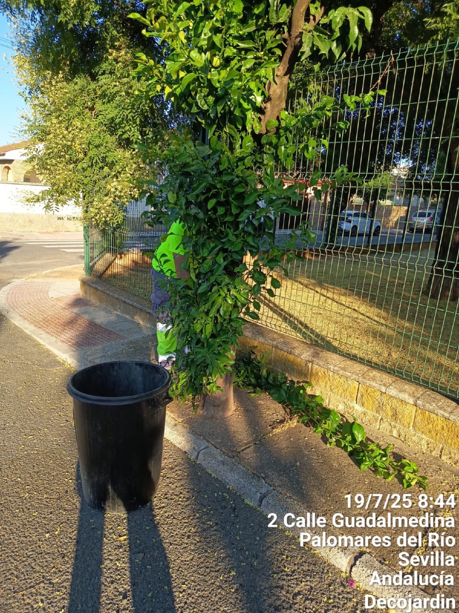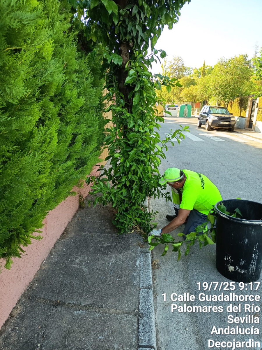 Durante el viernes 19 de julio se llevaron a cabo labores de limpieza y poda de brotes bajos en naranjos situados en diversas calles de las urbanizaciones El Caballo y Pozoblanco.