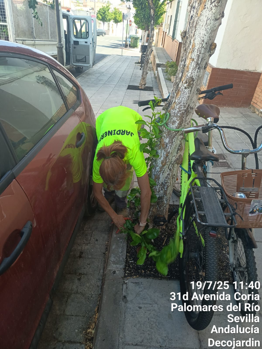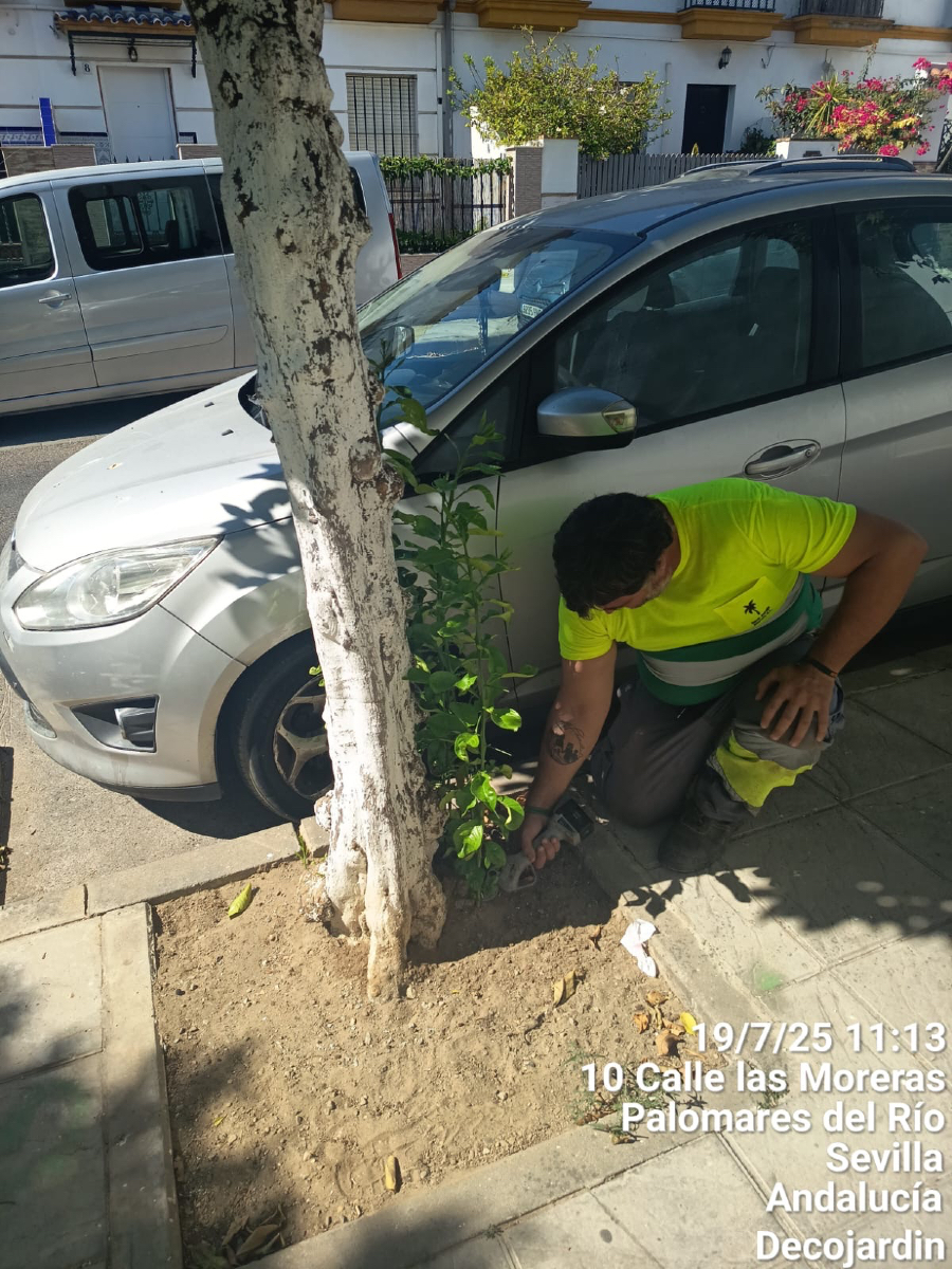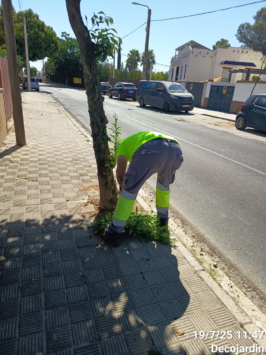 Durante el viernes 19 de julio se llevaron a cabo labores de limpieza y poda de brotes bajos en naranjos situados en diversas calles de las urbanizaciones El Caballo y Pozoblanco.