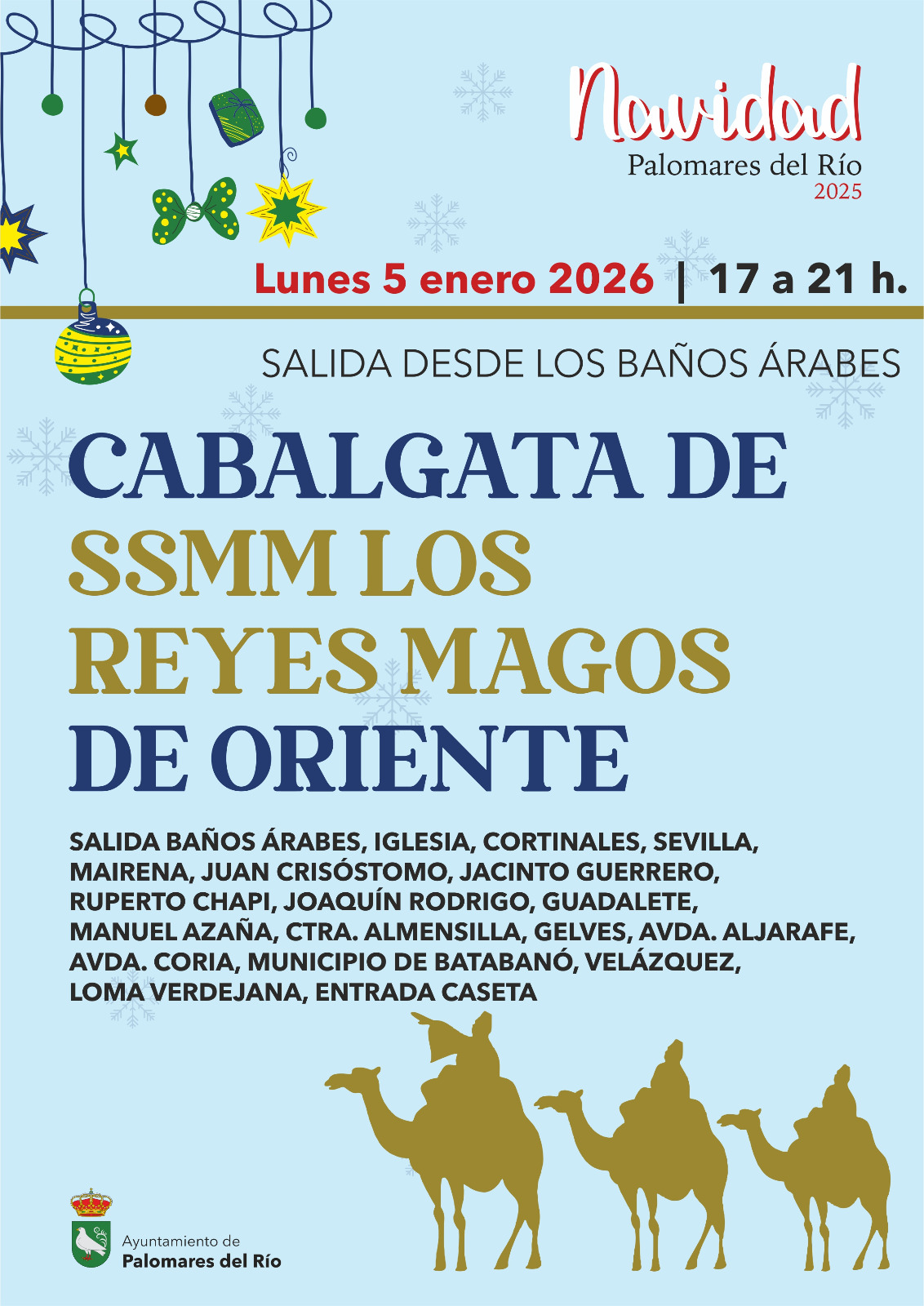 El próximo lunes 5 de enero, Palomares del Río se llenará de ilusión con la Cabalgata de SS.MM. los Reyes Magos de Oriente.