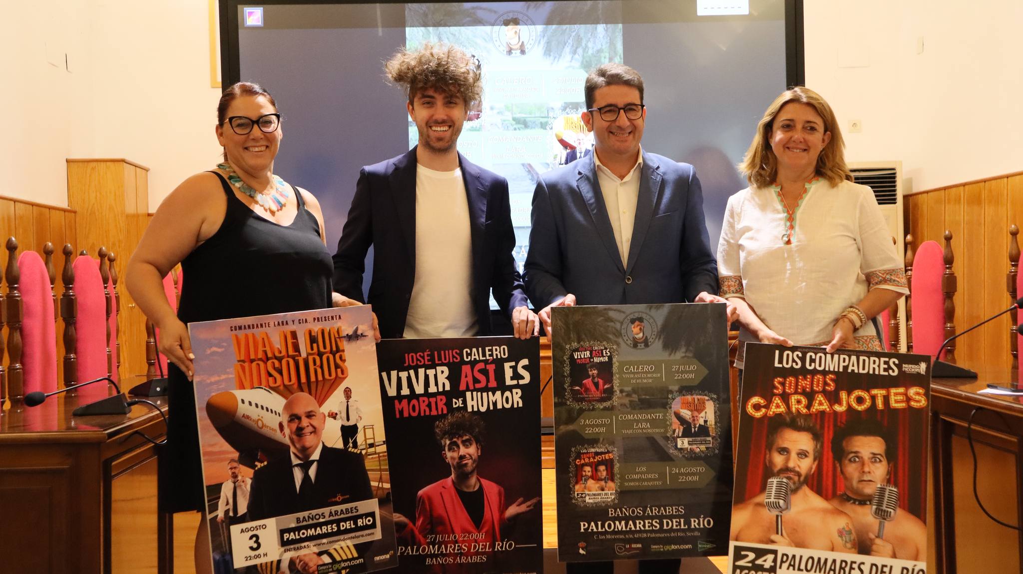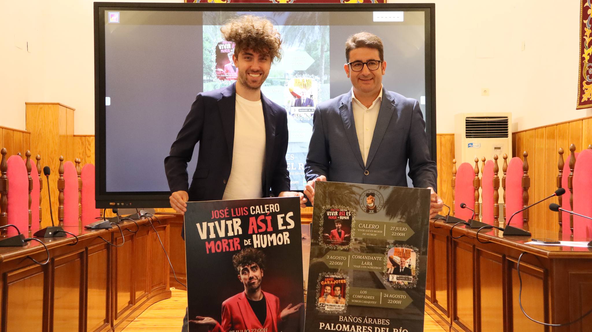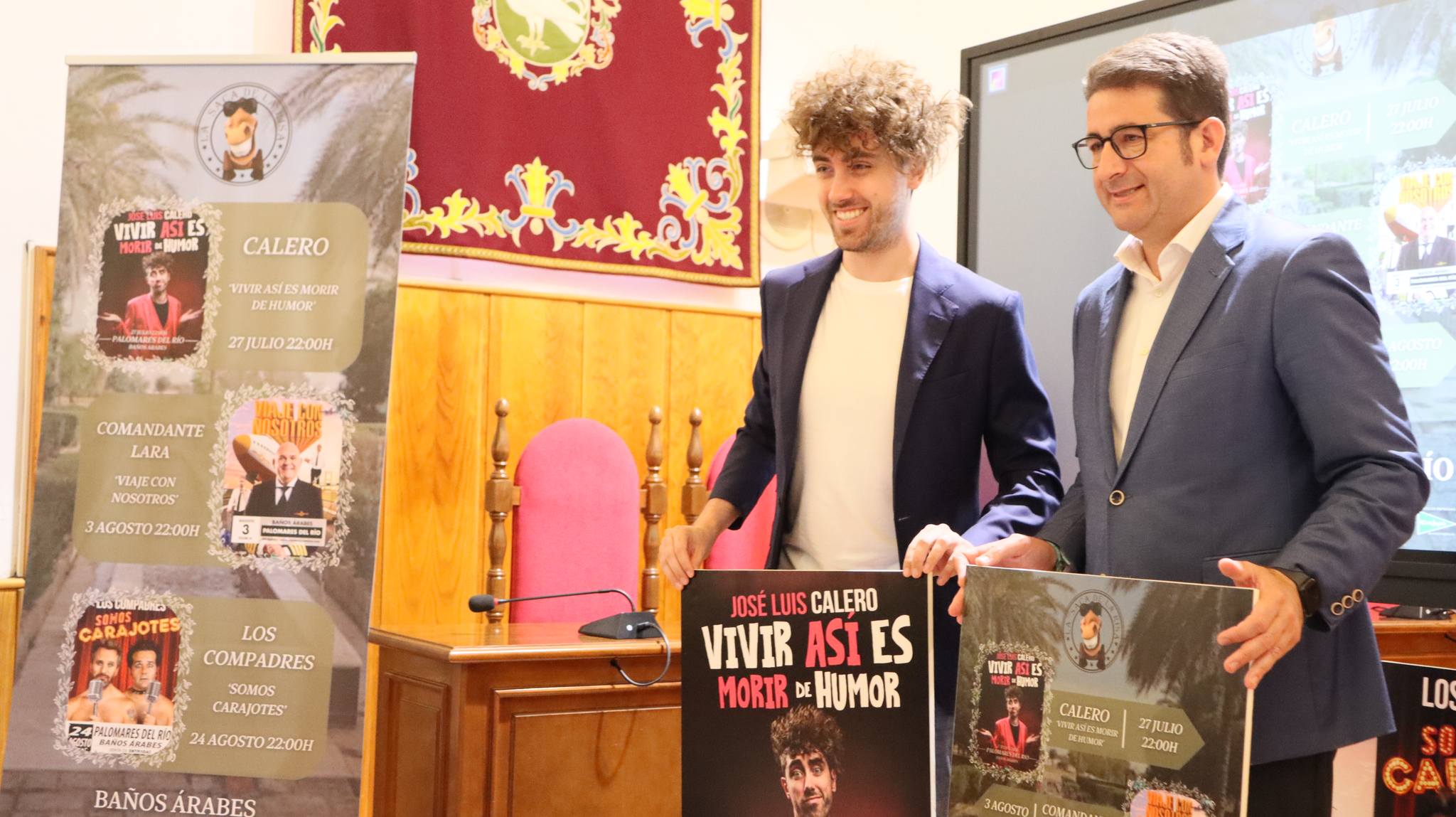 El alcalde de Palomares del Río, Manuel Benjumea, junto al humorista José Luis Calero han presentado esta mañana "La Saca de la risa", un ciclo de actuaciones humorísticas que prometen llenar de carcajadas las noches de verano. Este evento se llevará a cabo en el histórico entorno de los Baños Árabes y contará con tres actuaciones distintas protagonizadas por los siguientes actores y cómicos en las siguientes fechas:
