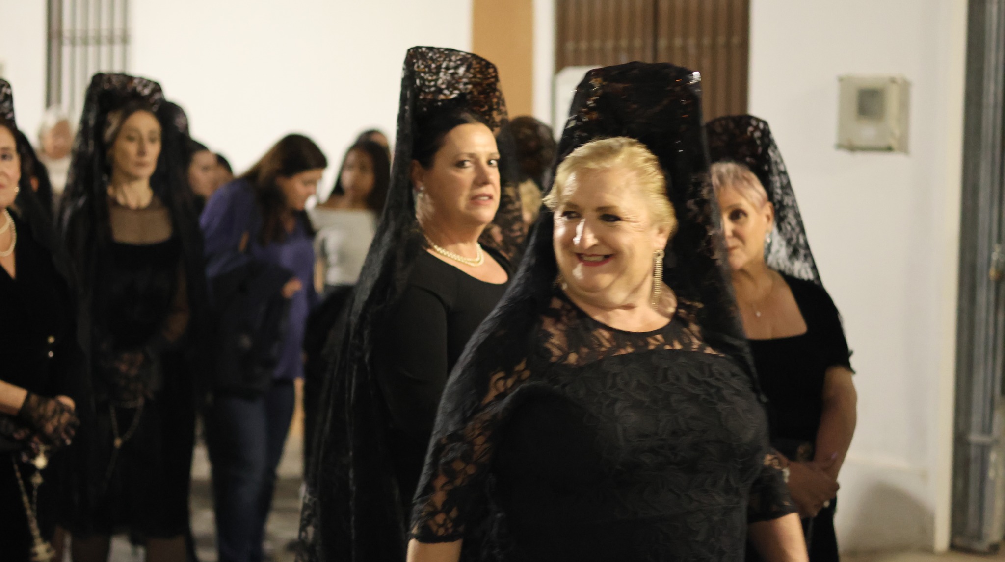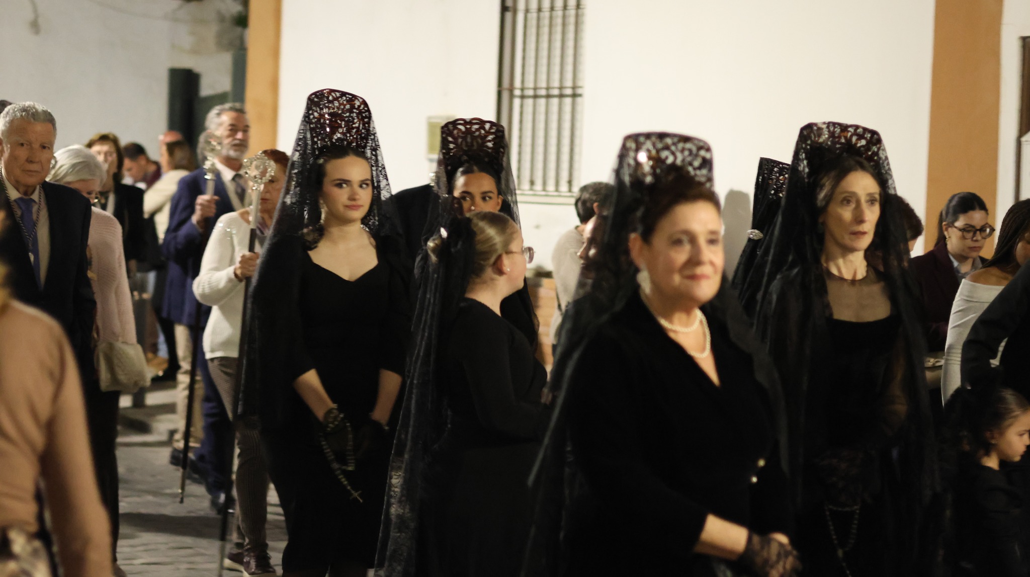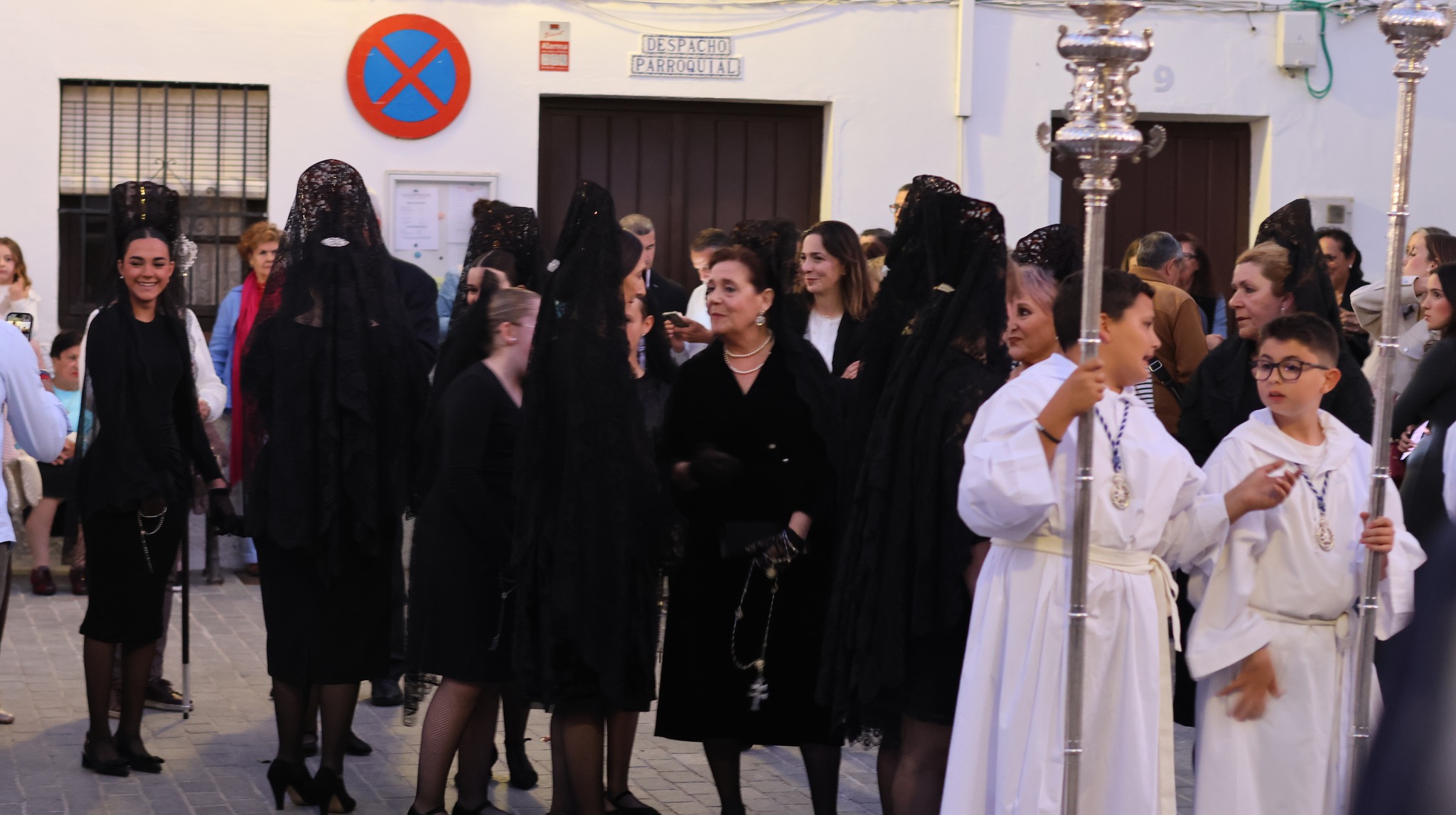 Las hermandades invitaron a las mujeres del municipio a vestir mantilla negra, manteniendo una tradición en esta jornada. El acompañamiento musical corrió a cargo de la Banda de Cornetas y Tambores de La Rinconada.