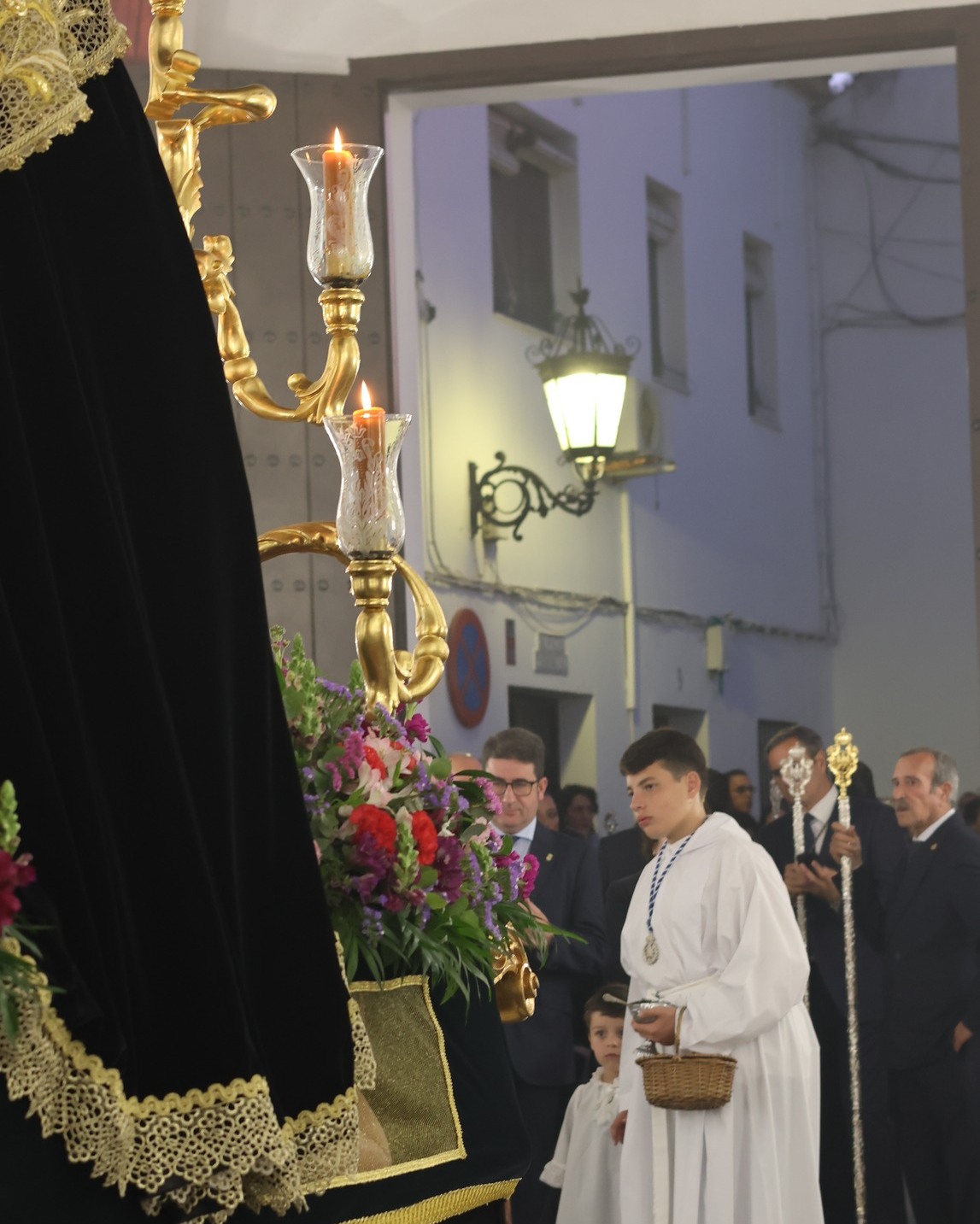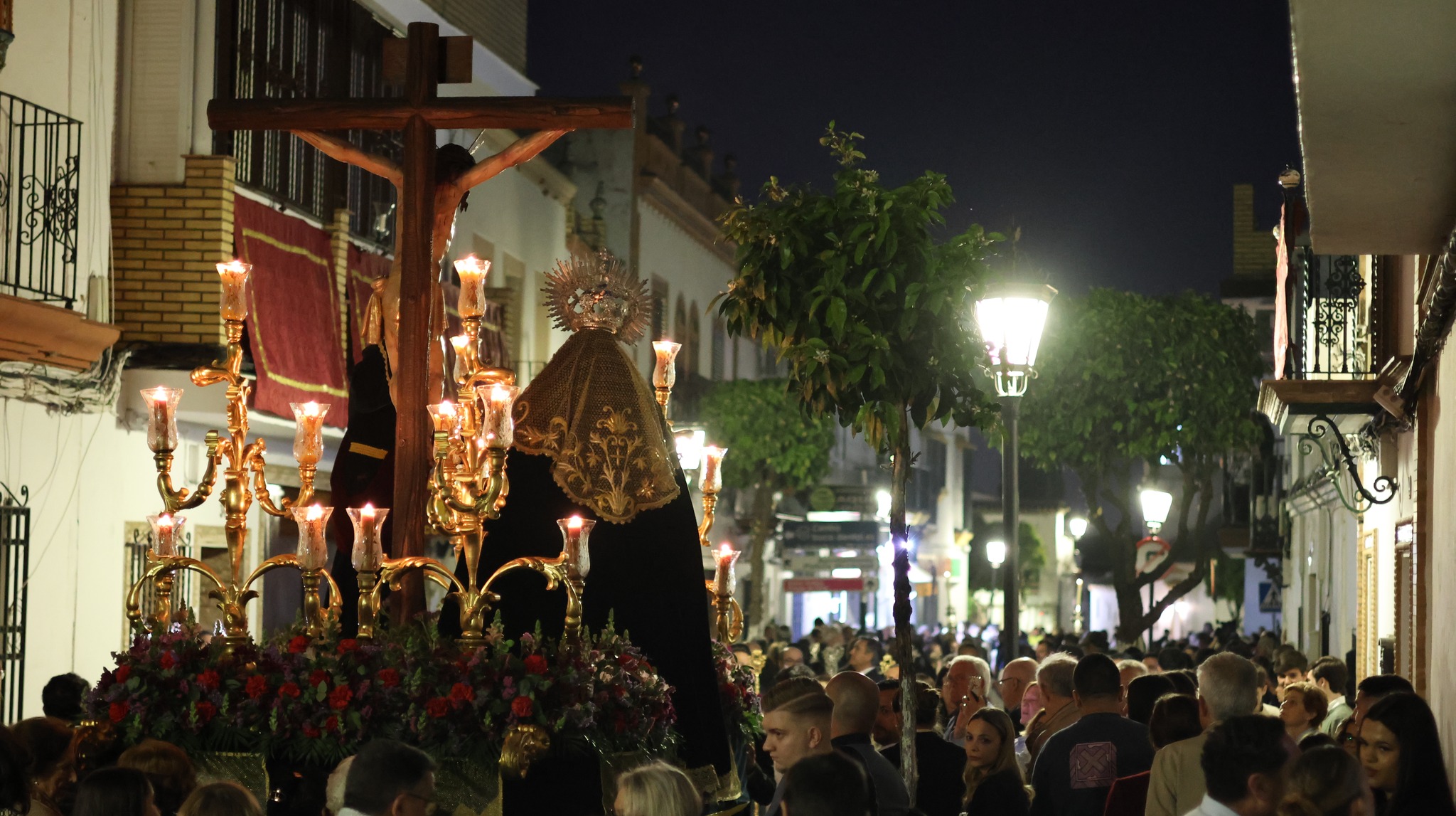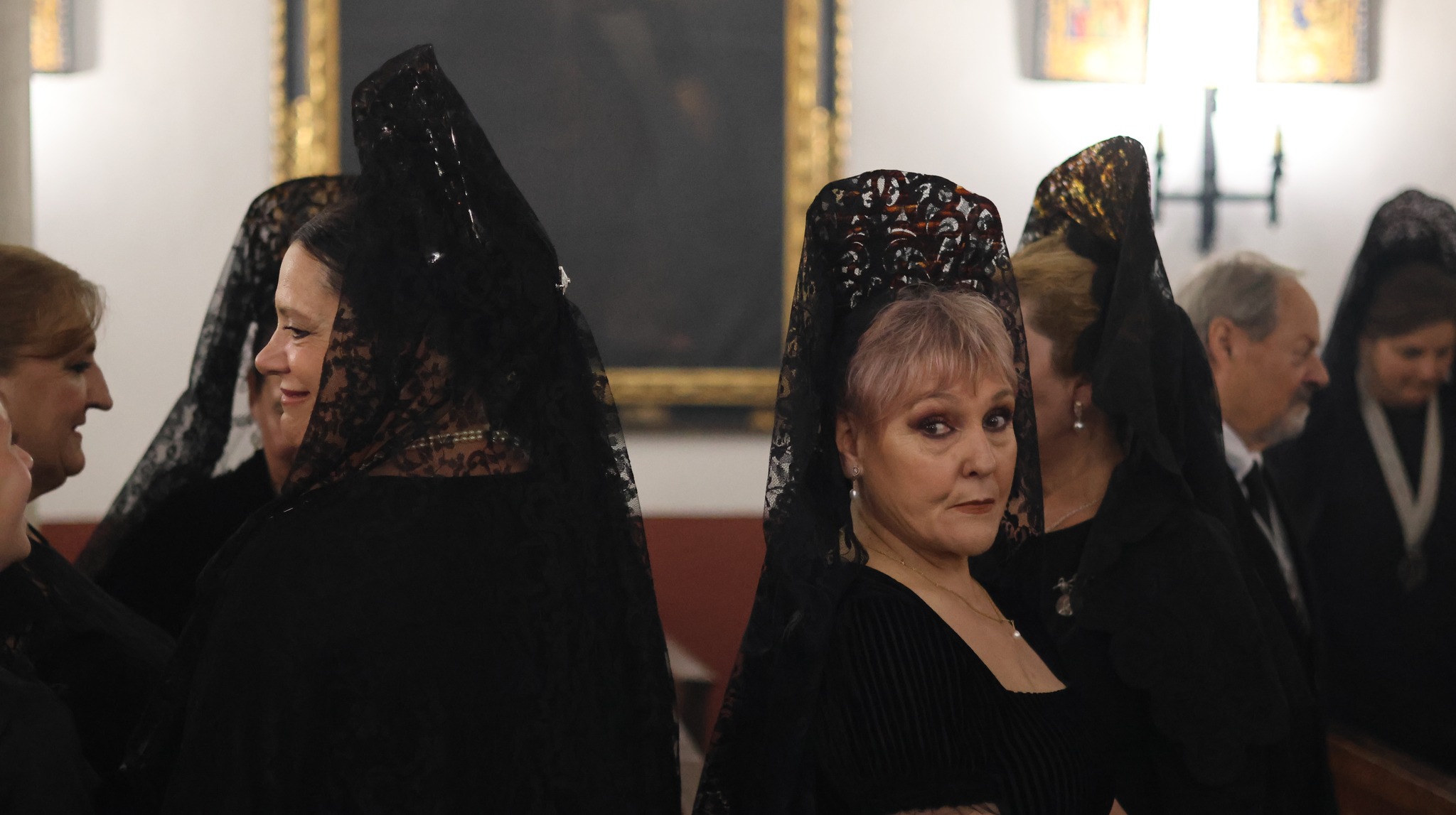 Las hermandades invitaron a las mujeres del municipio a vestir mantilla negra, manteniendo una tradición en esta jornada. El acompañamiento musical corrió a cargo de la Banda de Cornetas y Tambores de La Rinconada.