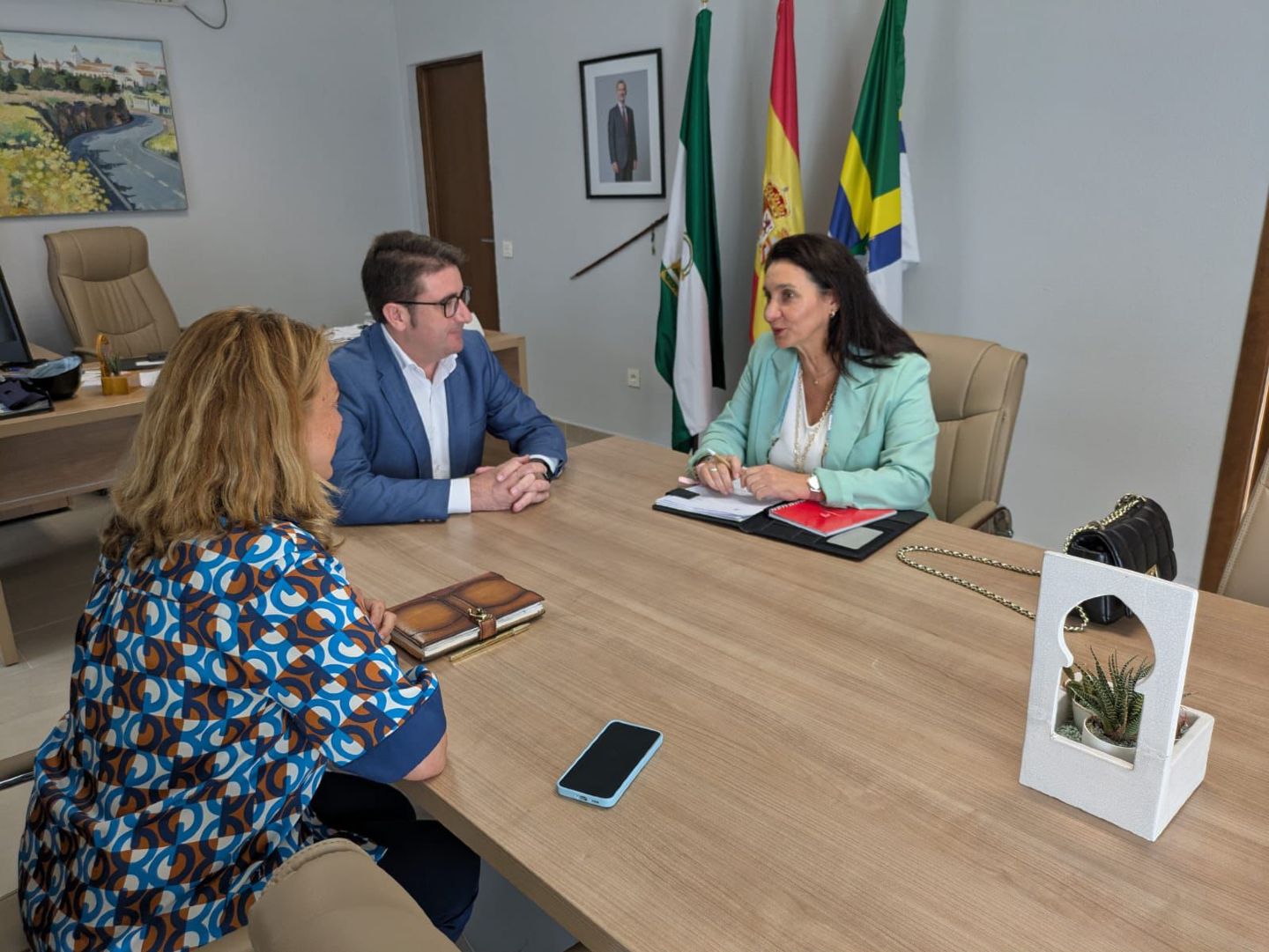 Ayer, 14 de octubre, el alcalde de Palomares del Río, Manuel Benjumea, y la delegada del área Palomares Inclusivo, Natividad Jiménez, recibieron la visita de María.
