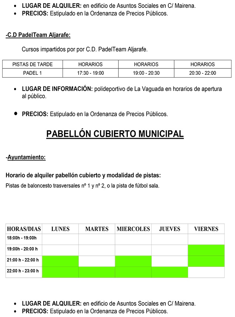 Para más información, puede contactar con la Delegación de Deportes llamando al 955763012, extensión 5.