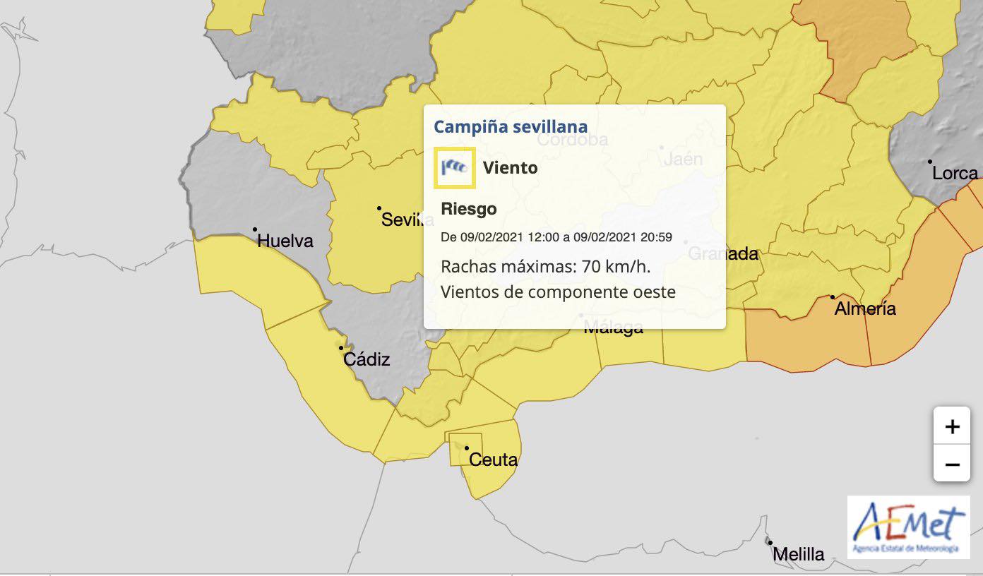 #Aemet activa para este martes #9Feb un AVISO NIVEL AMARILLO por VIENTOS.