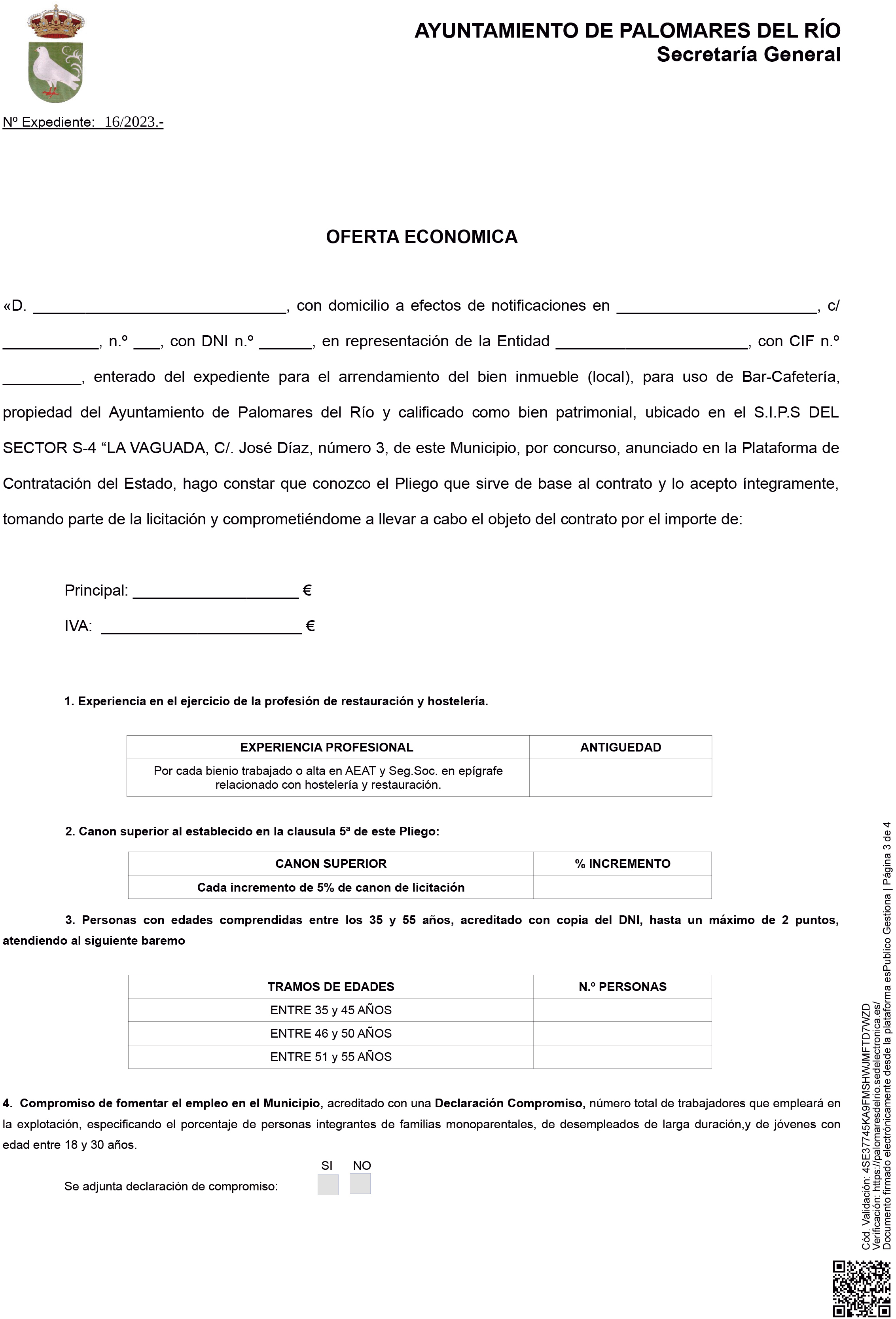 CONTRATO ARRENDAMIENTO PARA LA EXPLOTACIÓN DEL BAR CAFETERÍA UBICADO EN EL S.I.P.S DEL SECTOR S-4 “LA VAGUADA” DE ESTE MUNICIPIO.