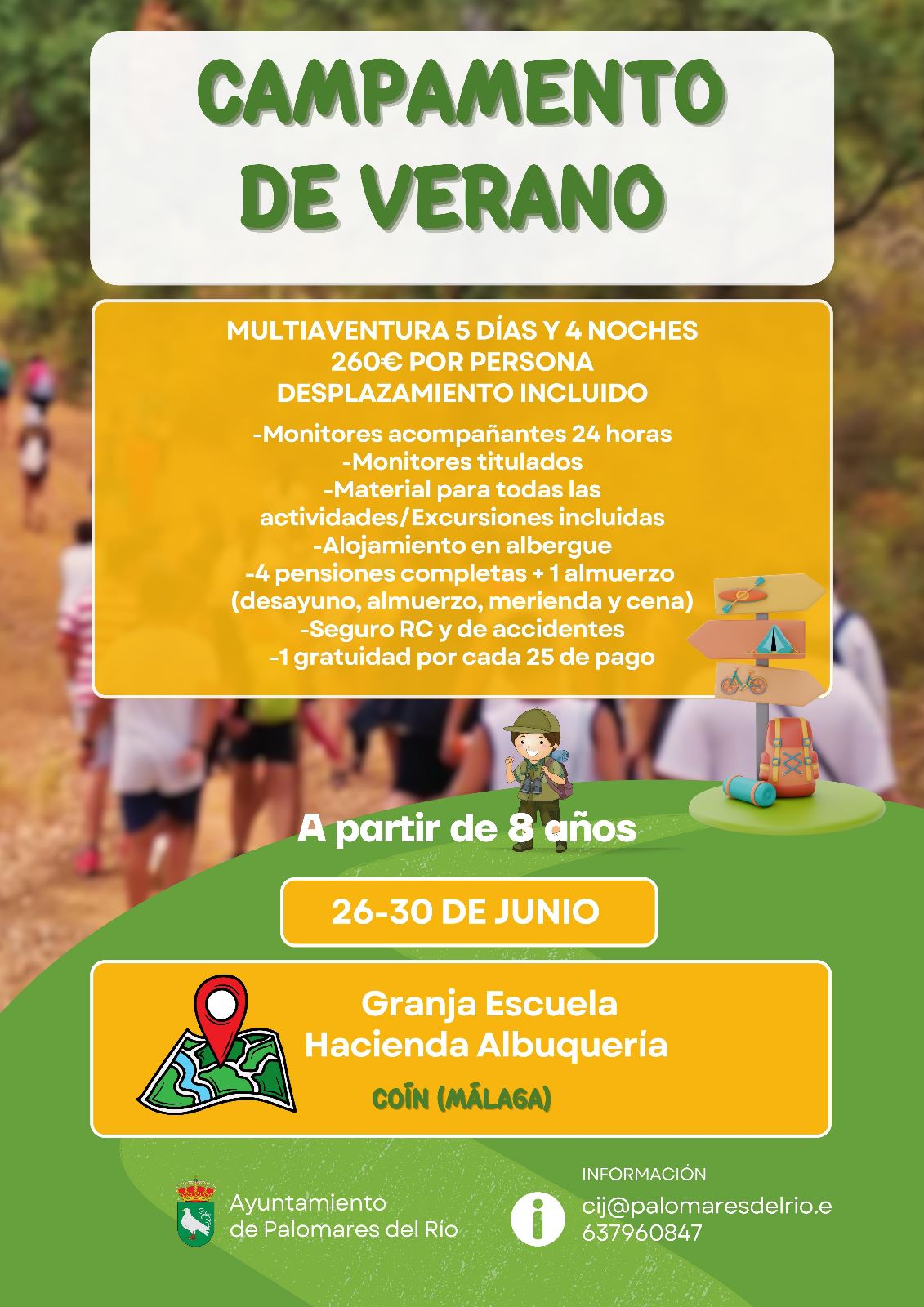 El área de Juventud del Ayuntamiento de Palomares del Río informa que ya está abierto el plazo de inscripción para el Campamento de verano: