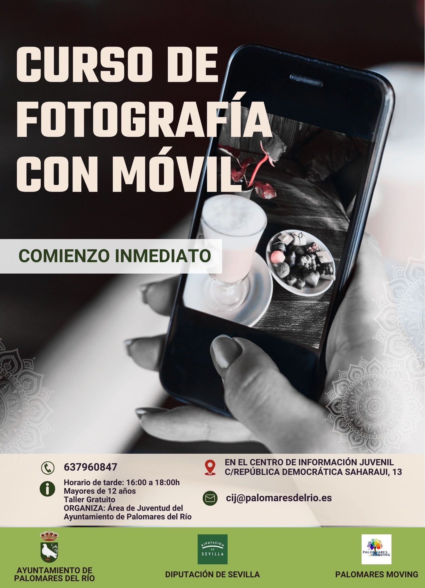 El taller es gratuito y está encuadrado dentro del programa Palomares Moving en colaboración con Diputación de Sevilla, se impartirá en el Centro de Información Juvenil (C/República Democrática Saharaui, 13) el horario será de 16:00 a 18:00 h.
