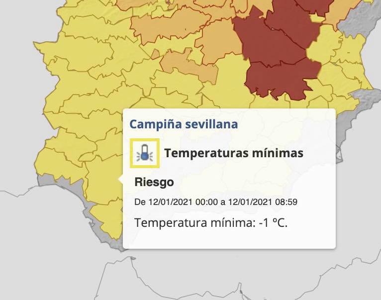 un AVISO nivel AMARILLO por BAJAS TEMPERATURAS, llegando a -1ºC.