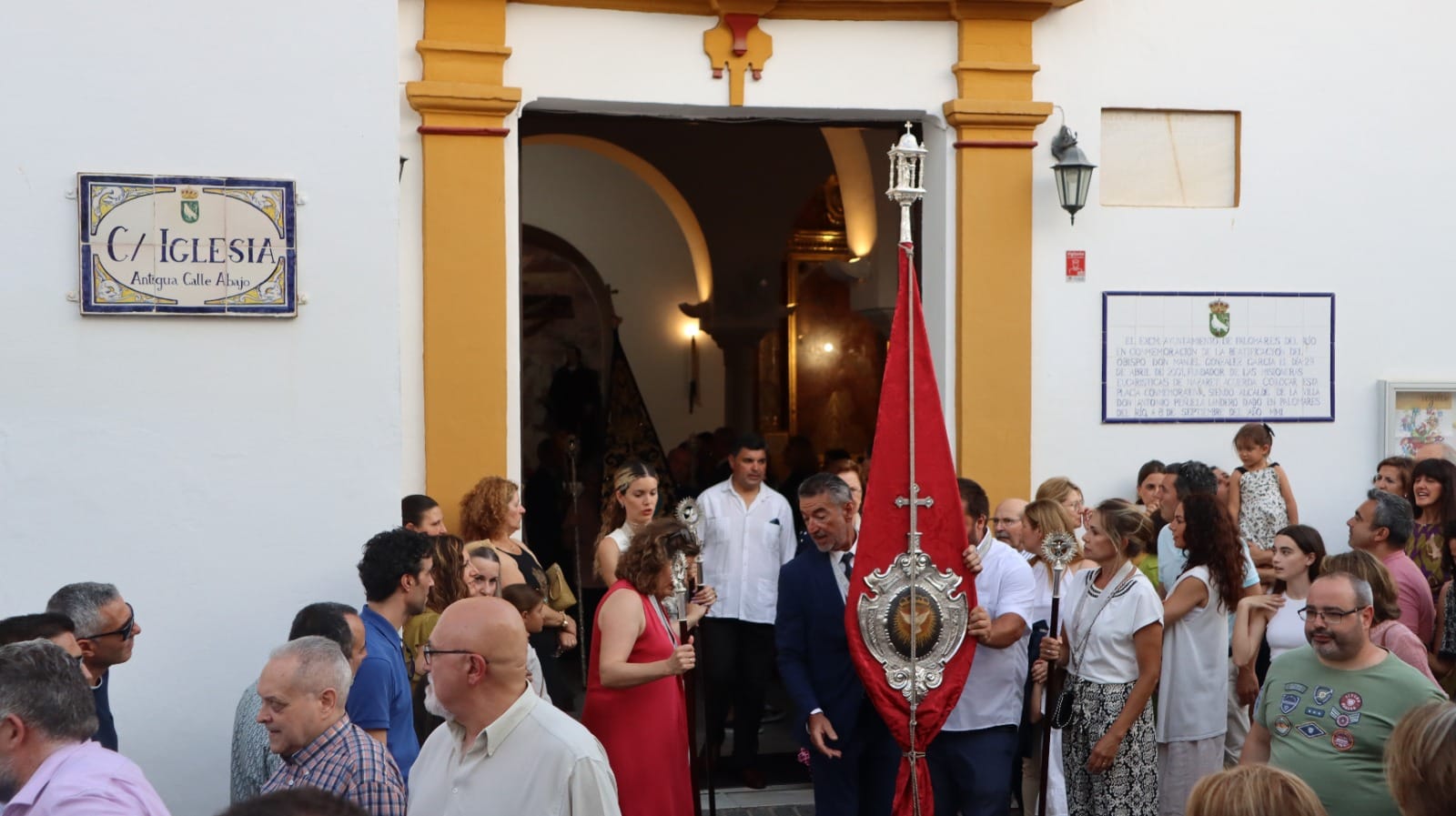 Las calles de Palomares del Río resplandecieron una vez más con la tradicional celebración del Corpus Christi. La solemnidad comenzó con la Santa Misa en la que se celebró el Sacramento de la Eucaristía, para dar paso a la procesión del Corpus Christi, que estuvo formada por los niños que este año han recibido su Primera Comunión, representantes de las instituciones religiosas de Palomares del Rio y por la representación de la corporación municipal, quienes recorrerían distintas calles de Palomares acompañando al Santísimo, siendo recibido por calles adornadas para la ocasión y presididas por distintos altares conmemorativos del día.
