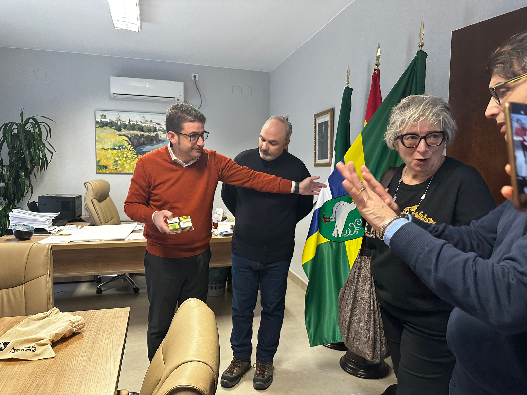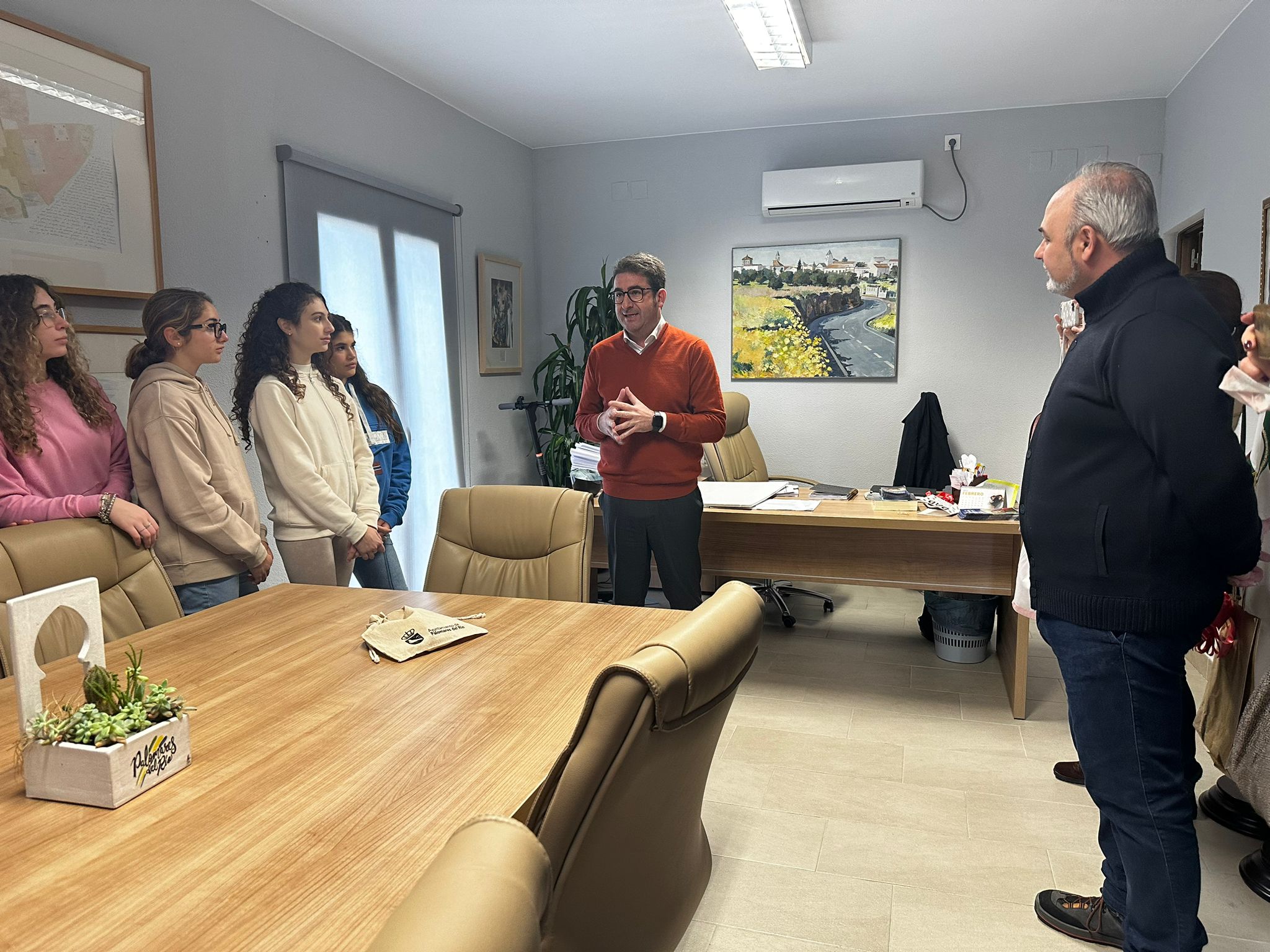 El alcalde de Palomares del Río, Manuel Benjumea ha recibido esta mañana en el Ayuntamiento Palomares del Río a alumnos de Sicilia (Italia) del centro Giardini Naxos. Benjuema les ha podido explicar a los jóvenes estudiantes las maravillas de nuestro municipio.