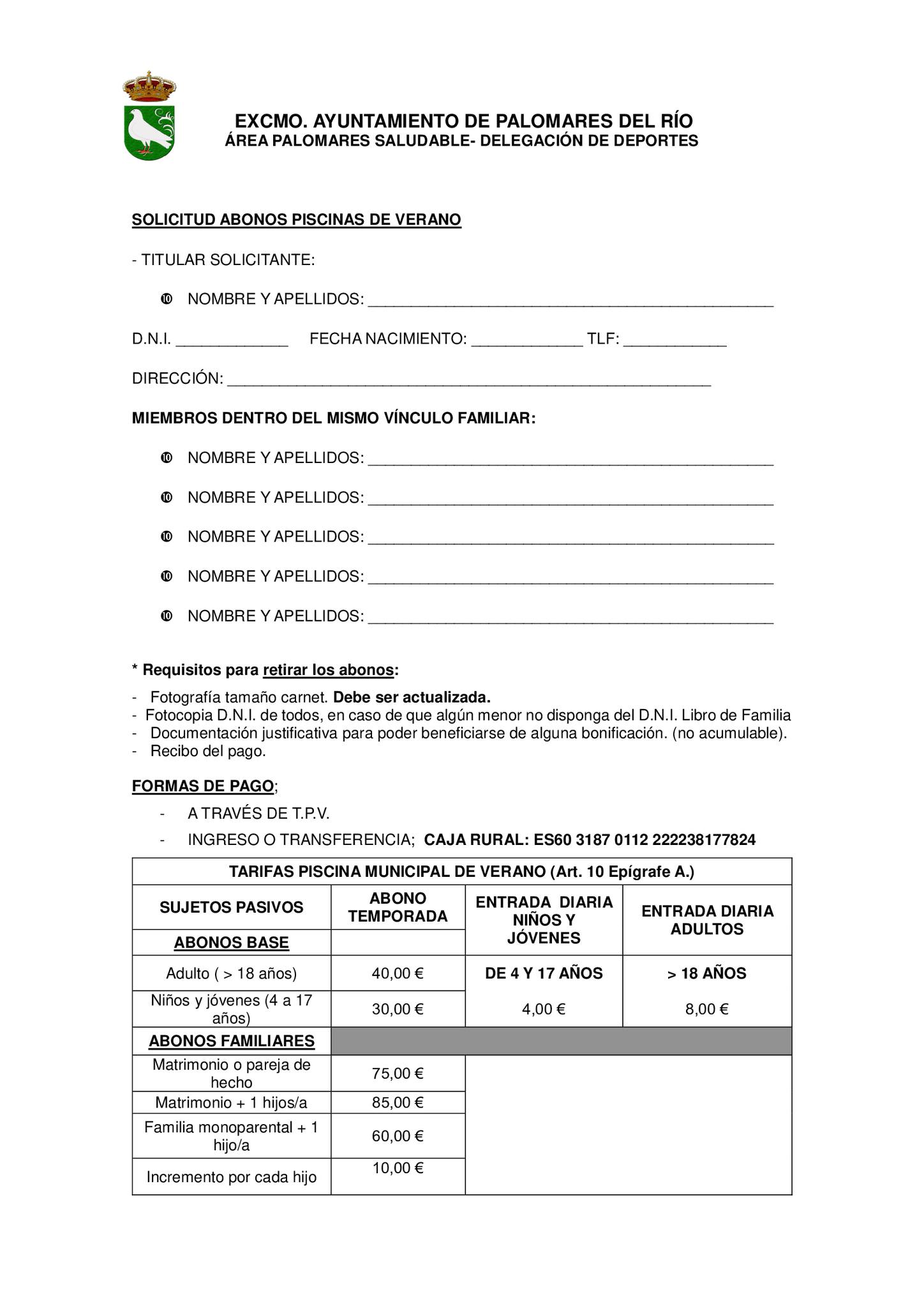 - Solicitud de abonado de las piscinas de verano