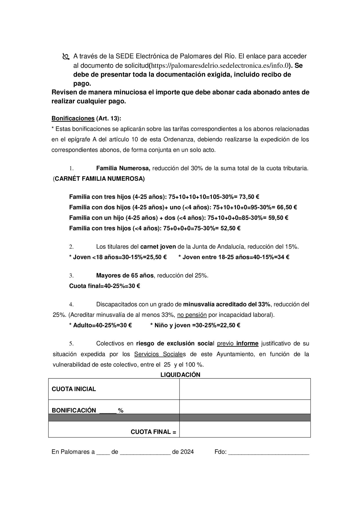 - Trámite online: Disponible a través de la SEDE Electrónica de Palomares del Río