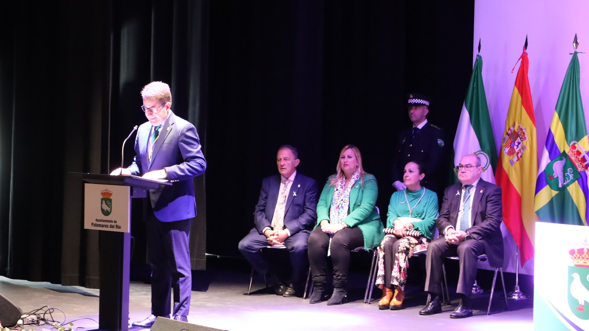 La presentadora Sonia Espejo abrió el acto con una breve intervención, seguida por el alcalde Manuel Benjumea quien expresó su orgullo de pertenecer a un municipio que mantiene su esencia como pueblo y subrayó que esta característica es parte fundamental de la identidad palomareña.