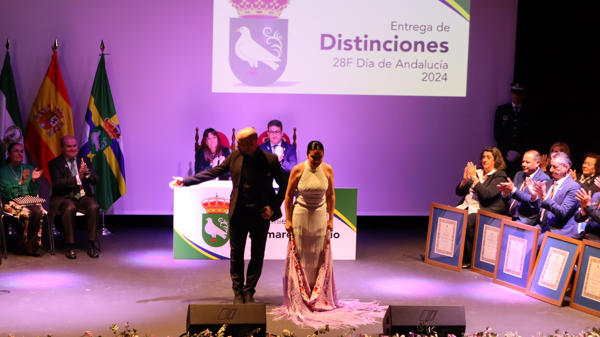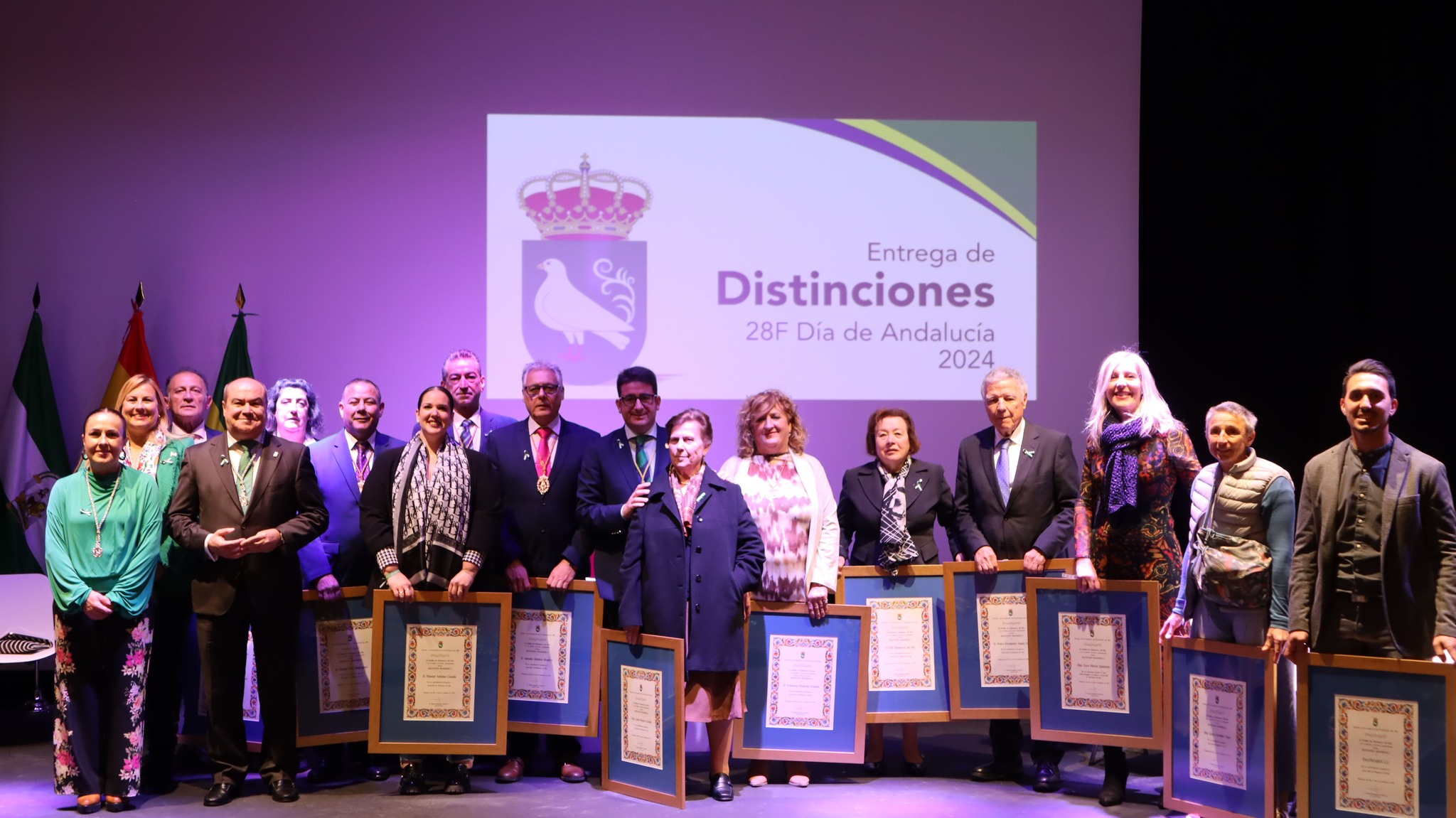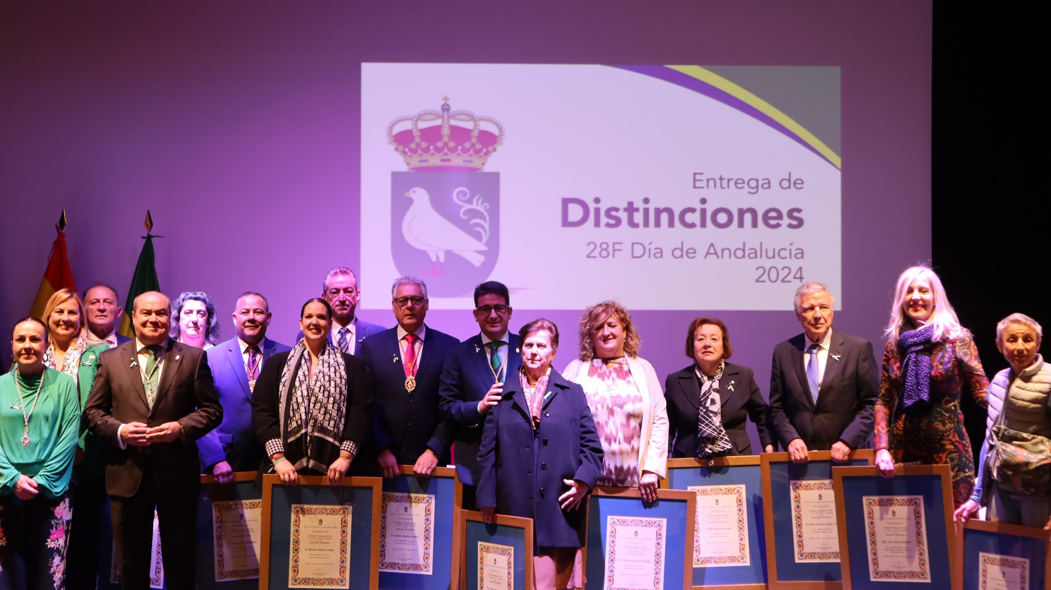 El Ayuntamiento de Palomares del Río llevó a cabo la entrega de distinciones a los del año 2024 en un acto oficial celebrado el miércoles 28 de febrero, coincidiendo con la celebración del Día de Andalucía. Este evento tuvo lugar en el recién inaugurado Teatro Municipal, siendo la primera vez que se celebra en este distinguido espacio.