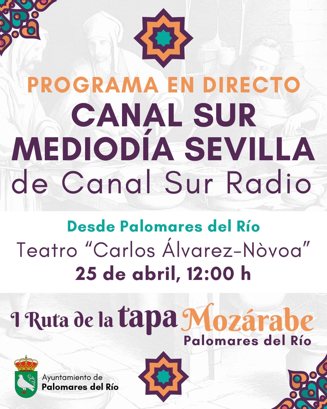Mañana jueves 25 de abril, a las 12:00 h. el programa radiofónico "Mediodía Sevilla" de Canalsur Radio se emitirá en directo desde el Teatro Municipal "Carlos Álvarez-Novoa" siendo nuestro municipio el protagonista del programa.