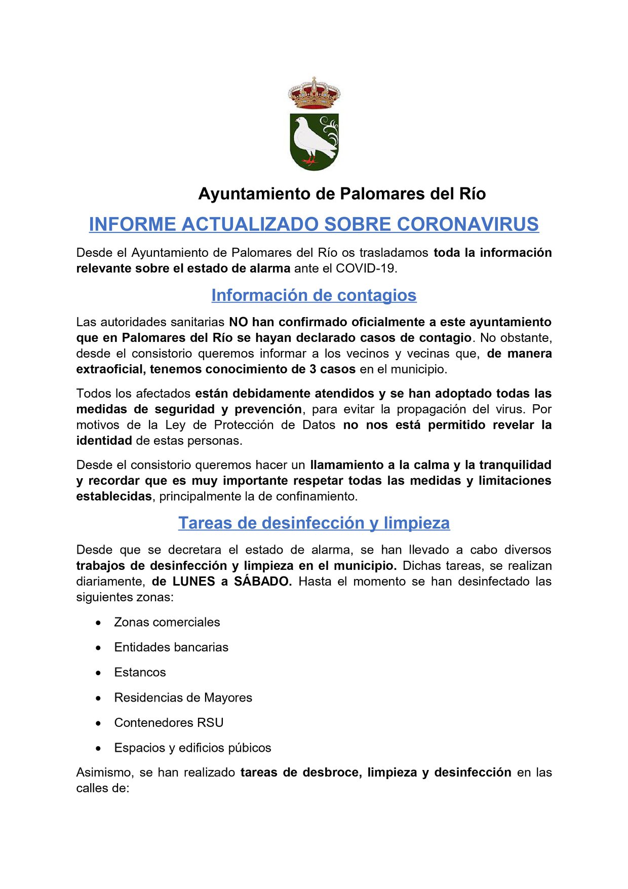 Continúan los trabajos de desbroce, limpieza y desinfección diarios de todas las calles de nuestro municipio, de los comercios y residencias de mayores, por parte, tanto de los operarios municipales, como por la empresa especializada que se ha contratado para agilizar esta tarea en todo el municipio.