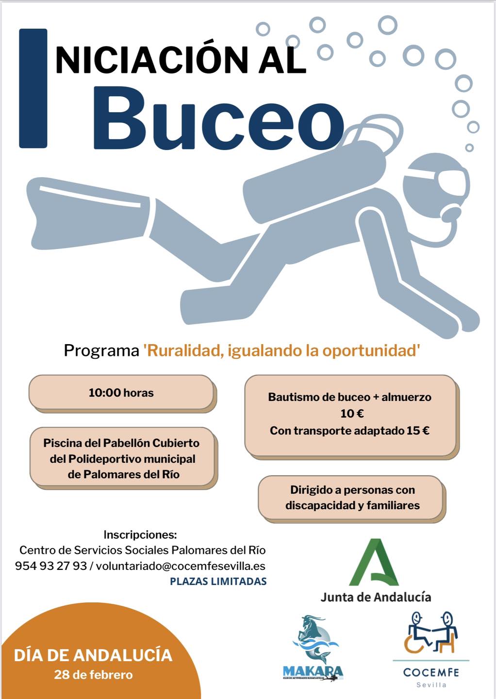 Iniciación al buceo el próximo 28 de febrero, a las 10:00h, en la piscina cubierta de la Vaguada, más información en el cartel.
