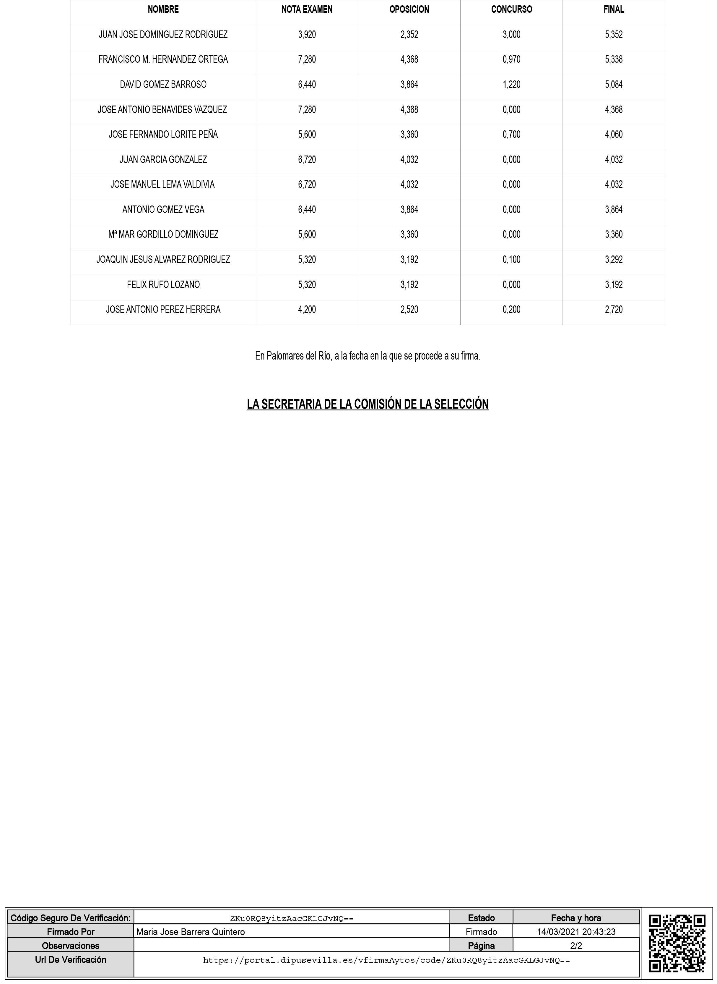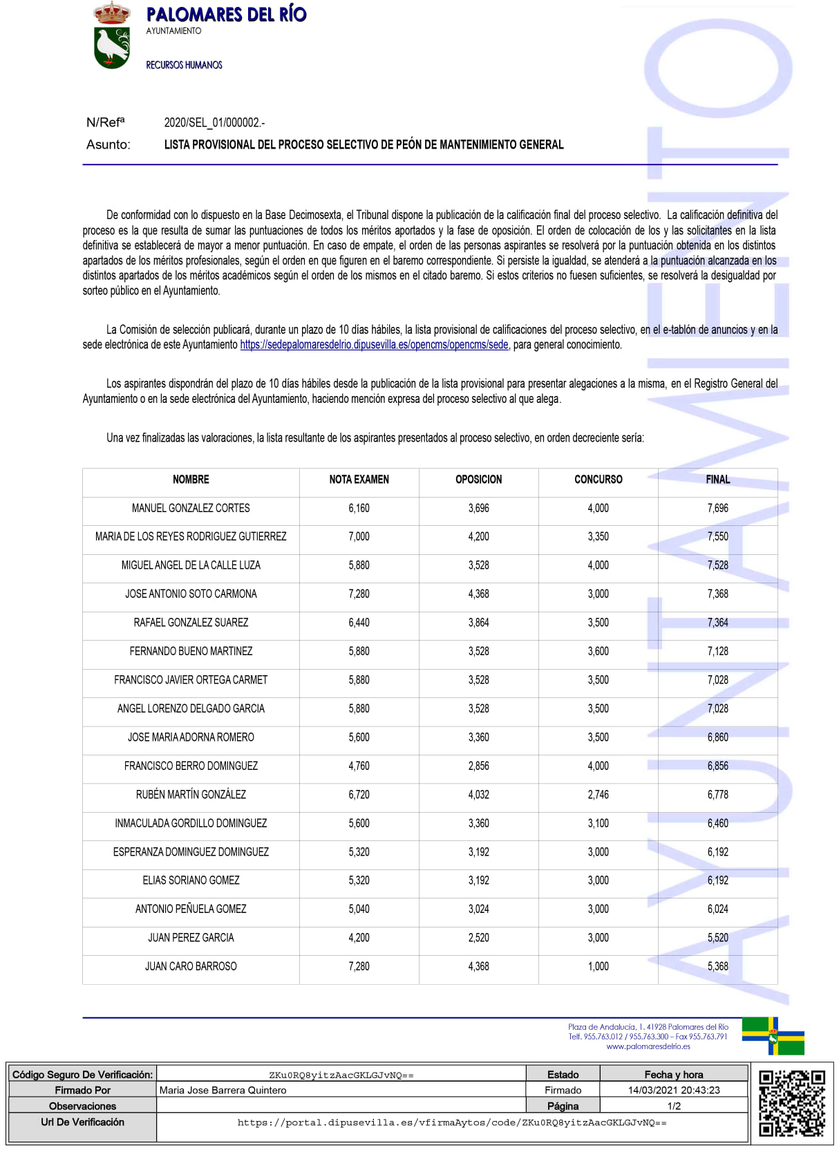 LISTA PROVISIONAL DEL PROCESO SELECTIVO DE PEÓN DE MANTENIMIENTO GENERAL