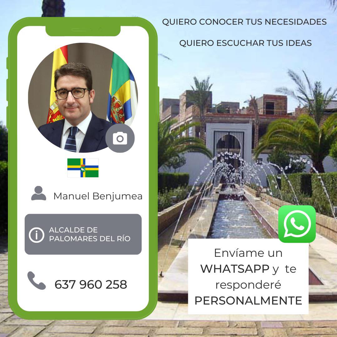 El ayuntamiento de Palomares del Río pone a disposición de todos sus vecinos una línea de WhatsApp (637 960 258) que gestionará directamente el Alcalde, Manuel Benjumea, de este modo, se amplían los canales de comunicación para atender a cuantas personas lo necesiten.