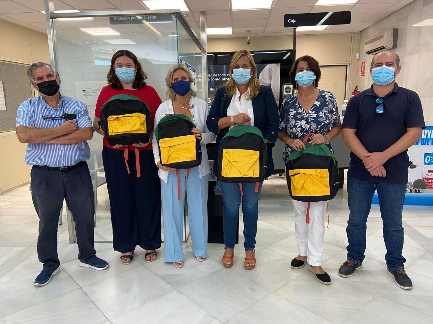 El Ayuntamiento de Palomares Del Río, a través del Centro de Servicios Sociales Comunitarios, y la Obra Social La Caixa (Caixabank) entregarán mochilas sociales con material escolar para las familias con menos recursos económicos. La Alcaldesa, la concejala de Bienestar Social, el concejal de Educación, el concejal de Cultura y voluntarias de la obra social La Caixa, asistieron ayer a la sede oficinas de Caixabank en Palomares Del Río para presentar esta campaña.