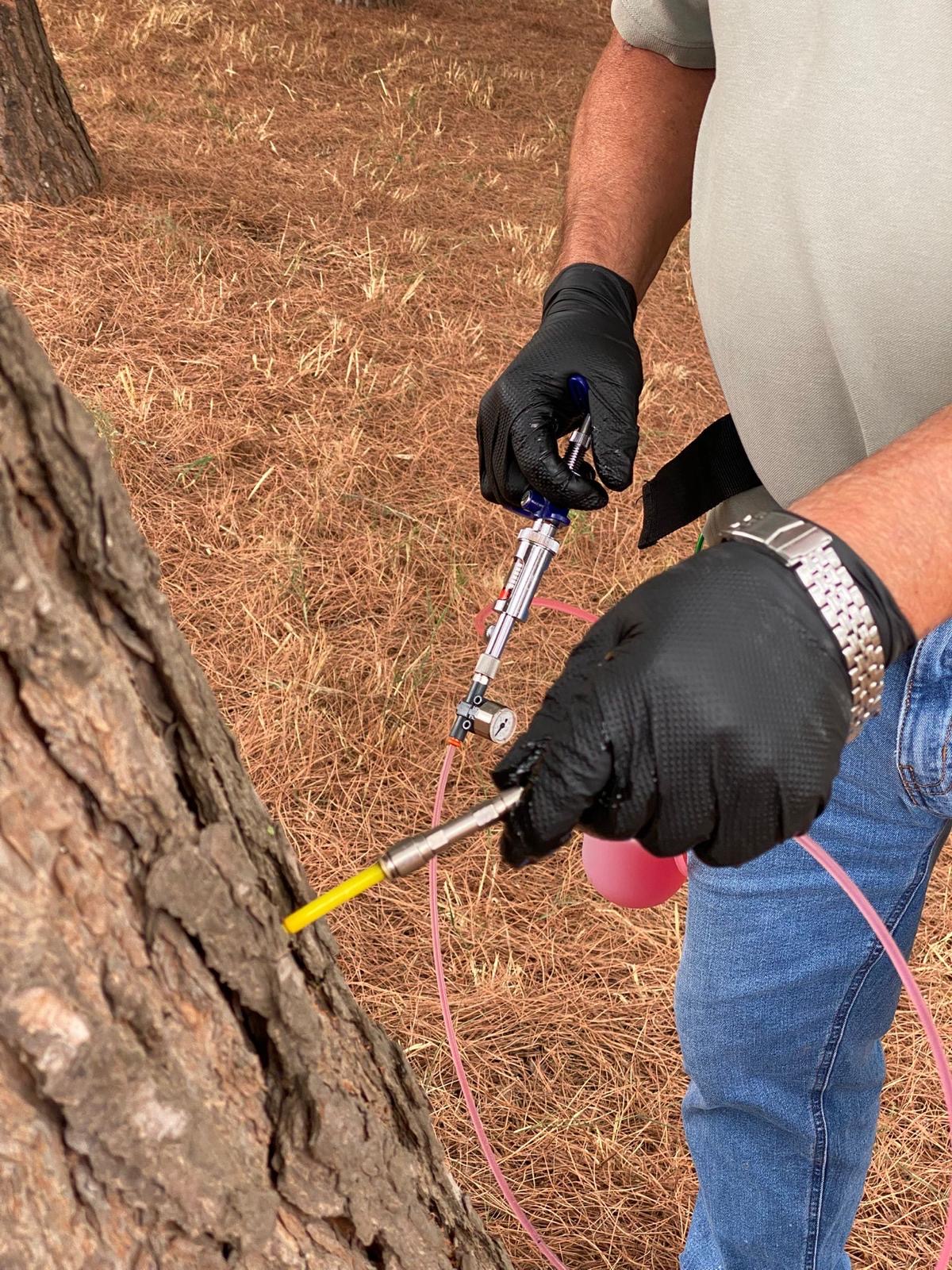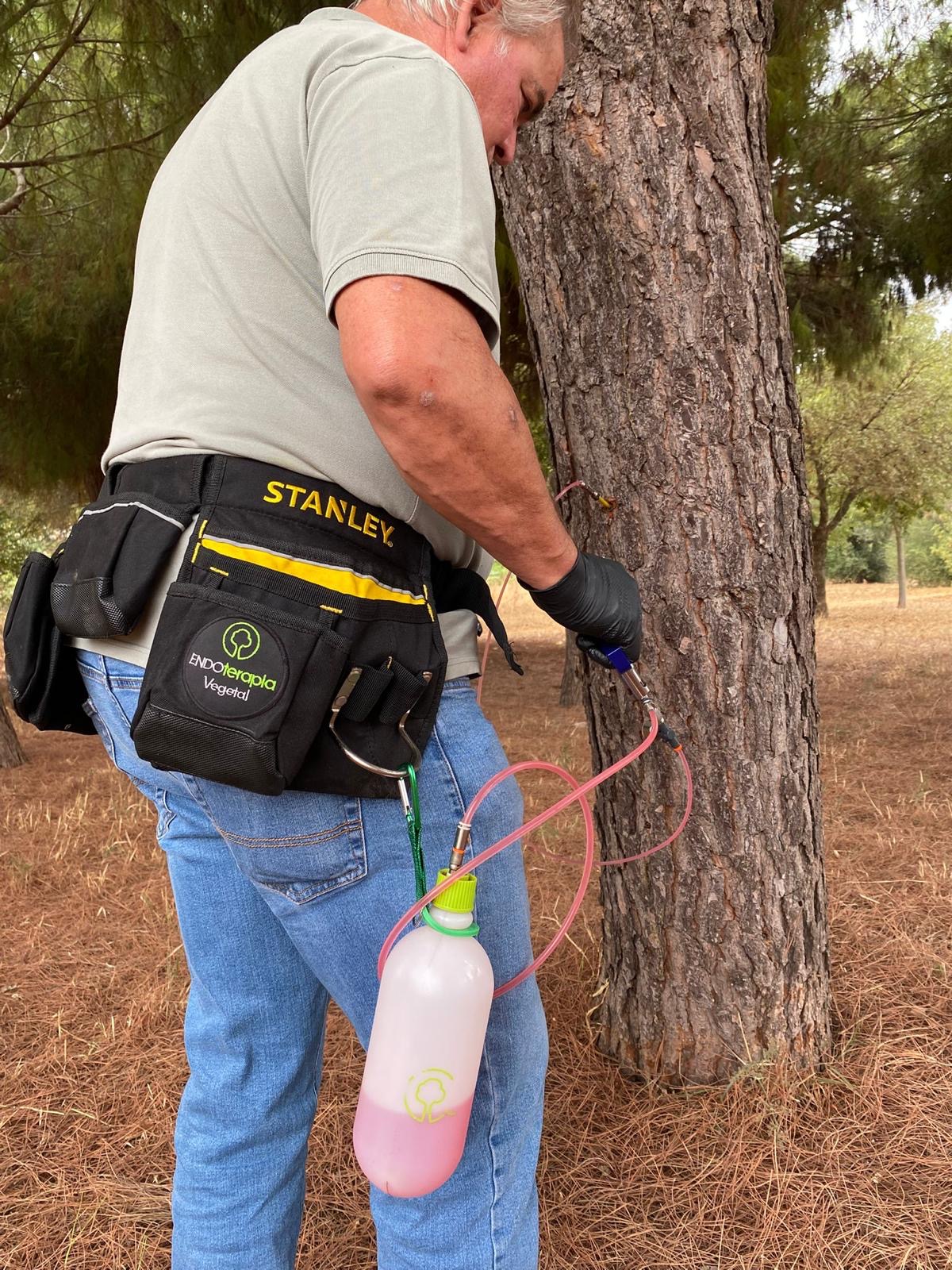Este tratamiento se aplica directamente en el tronco mediante una mezcla específica de surfactantes no iónicos, ciclohexanol y abamectina, garantizando así máxima eficacia y mínimo impacto ambiental.