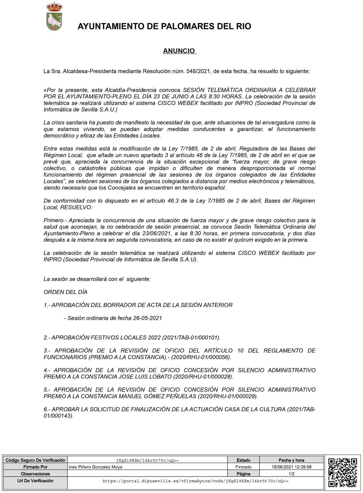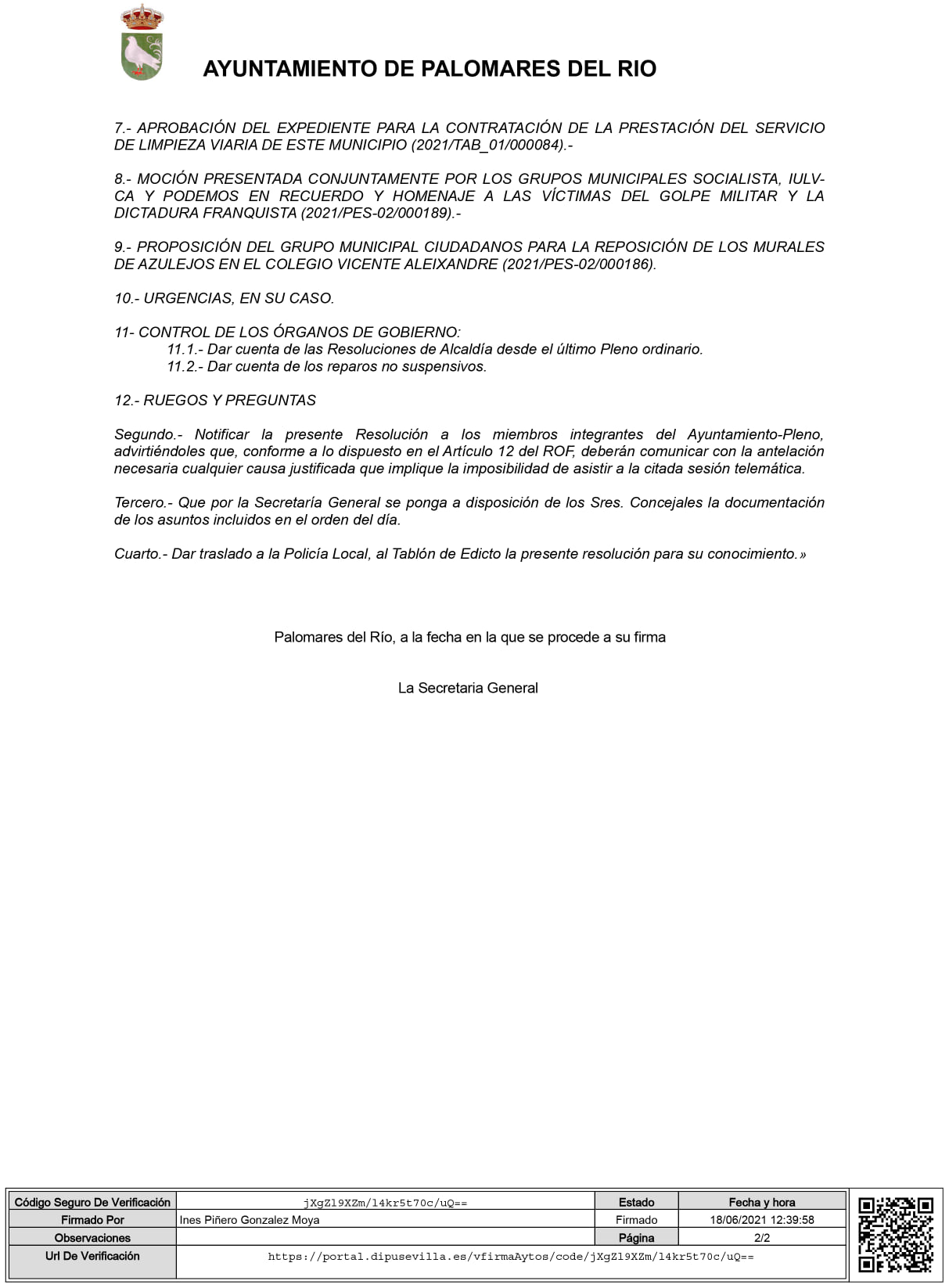 PALOMARES DEL RÍO - 23/06/2021 - SESIÓN TELEMÁTICA ORDINARIA