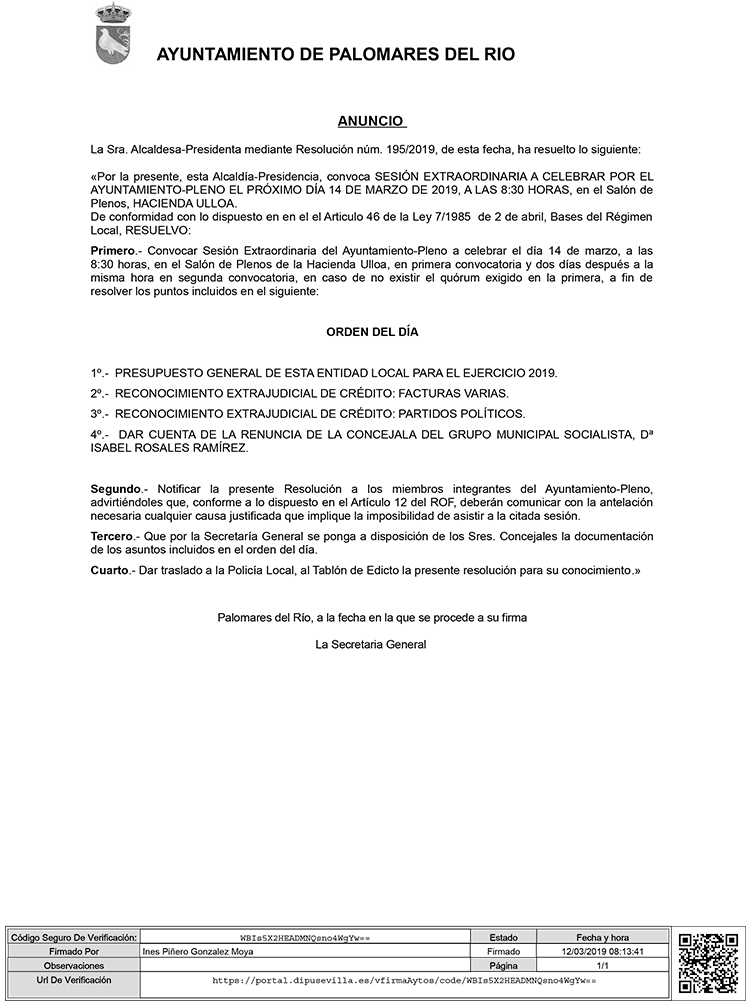 PLENO EXTRAORDINARIO 14 DE MARZO DE 2019
