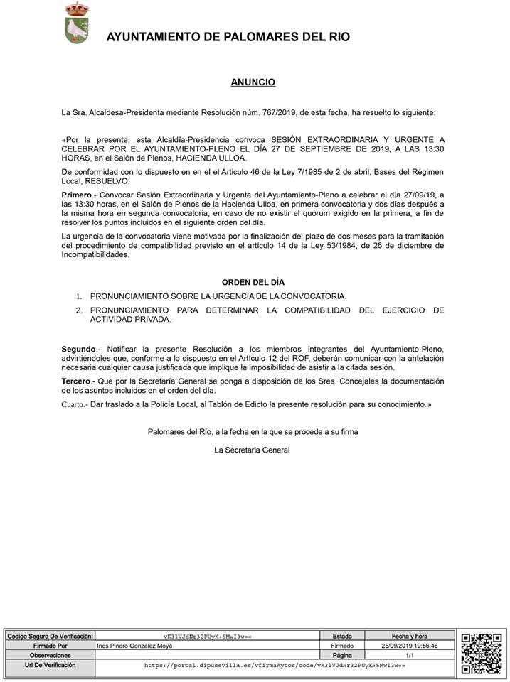PLENO EXTRAORDINARIO Y URGENTE